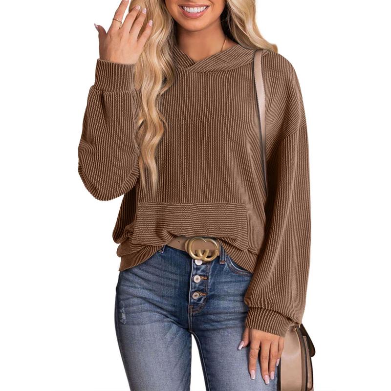 Women's Pullover Hoodies Sweatshirts Casual Loose Long Sleeve Ribbed Knit Shirts
