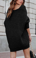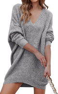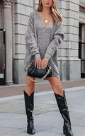 Women's Pullover Sweater Dress Casual Long Sleeve Ribbed Knit V Neck Loose Oversized Sweater Dress