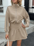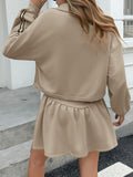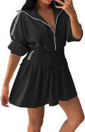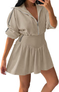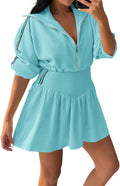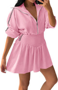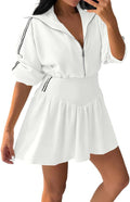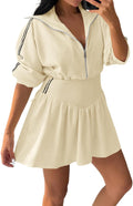 Womens Quarter Zip Cropped Sweatshirts Skirts Sets