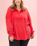 This sweatshirt is crafted in an oversized silhouette and ribbed fabric, with an adjustable zipper at the neckline and a slit hem for comfort. It's perfect for a casual yet playful look.