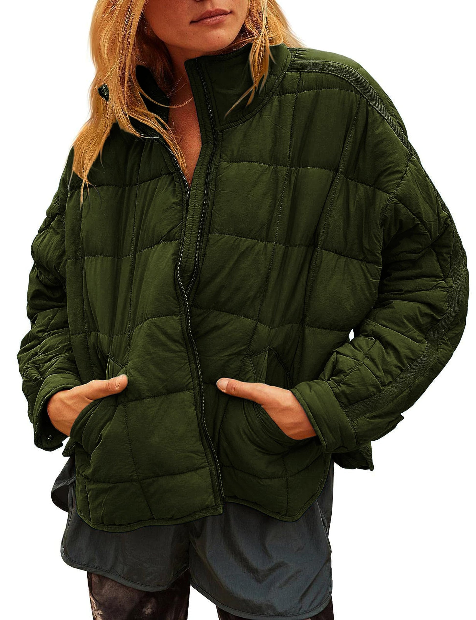 Womens Quilted Puffer Jackets Lightweight Zip up Short Winter Coat with Pockets