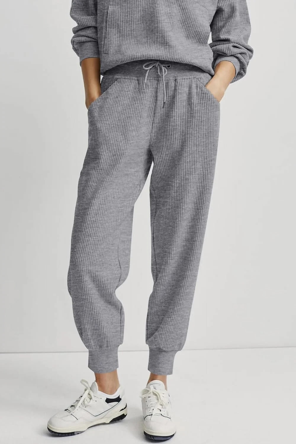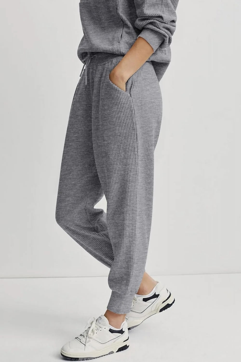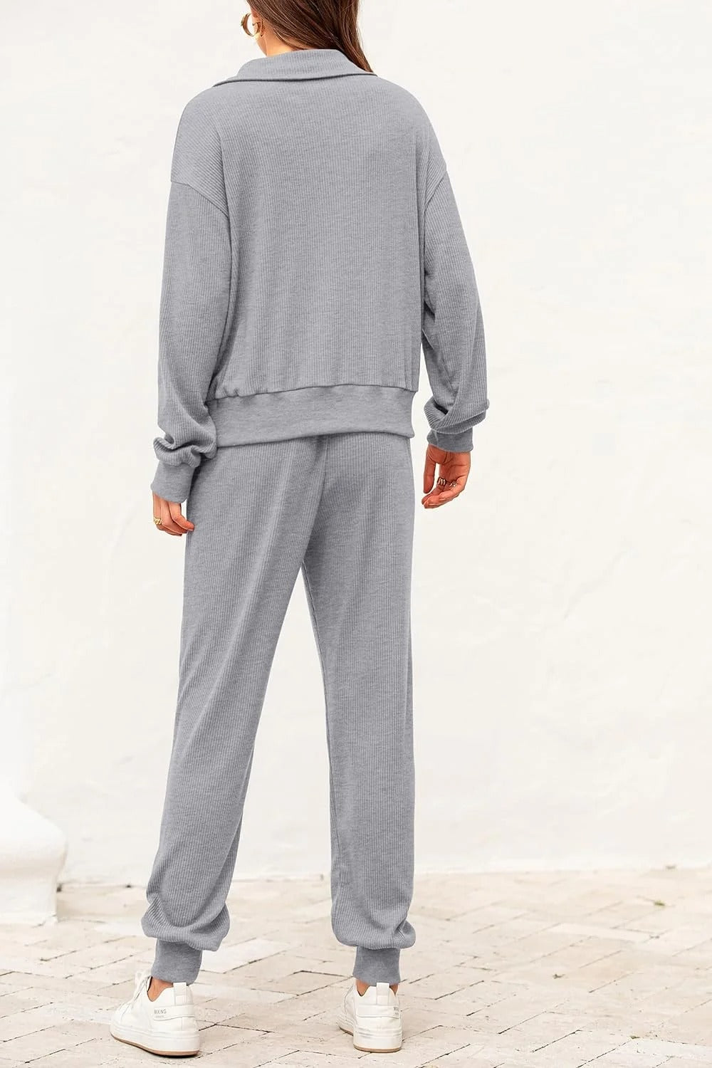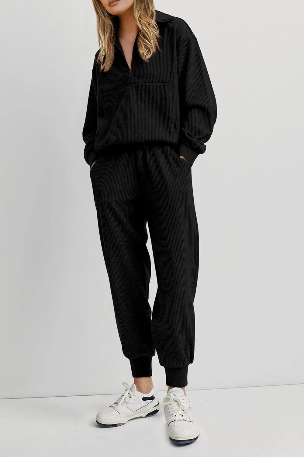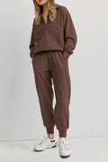 Women's Ribbed Half-Zip Two-Piece Pocket Long-Sleeve Top and Drawstring Pants