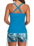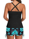 Womens Ribbed Tankini Top Bathing Shorts Tummy Control Two Piece Tankini Swimsuits