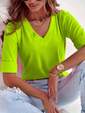 - Luxurious Ribbed V Neck Rolled Short Sleeve T Shirt