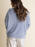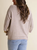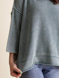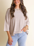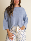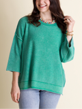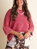 Women's Round Neck 3/4 Sleeves Washed Sweater Top