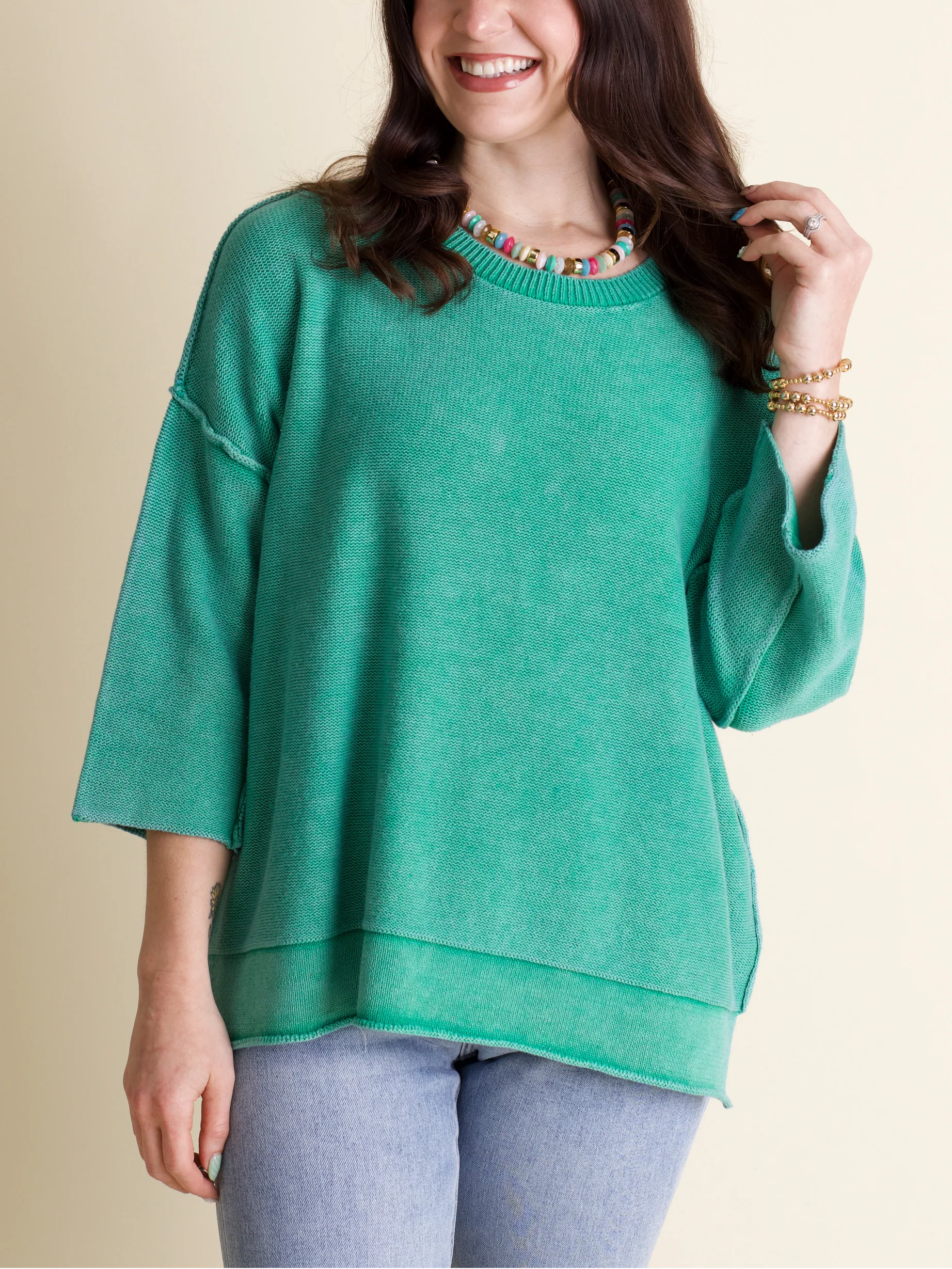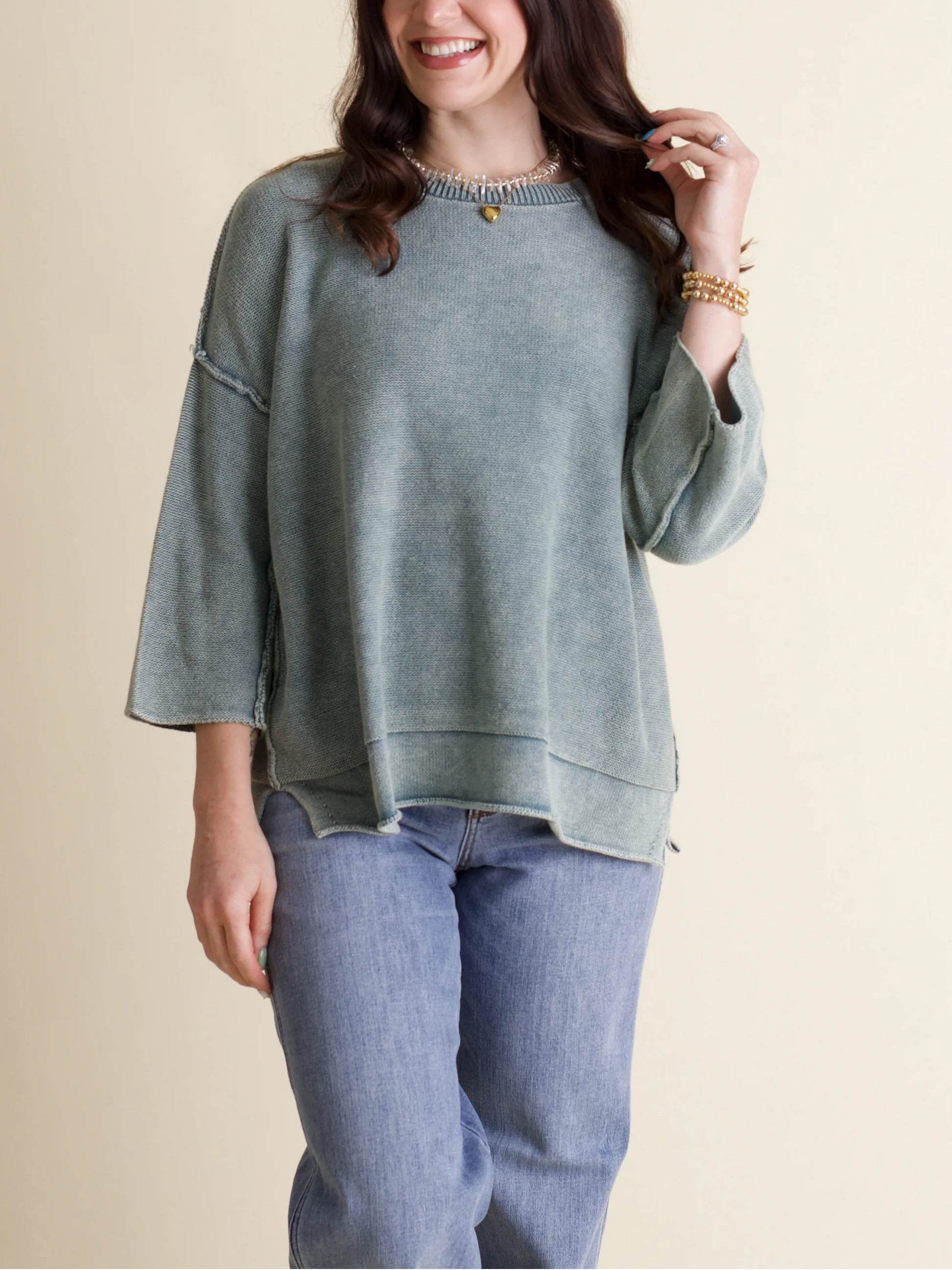 - Washed 3/4 sleeve sweater