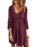 - Features: Crew neck, long sleeves, button fastening and elastic waist