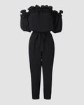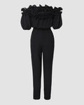 This jumpsuit features an off-the-shoulder cut that accentuates your collarbones, making you look elegant and modern.The ruffle detail at the hem adds a touch of sophistication and femininity, enhancing the overall impression.