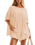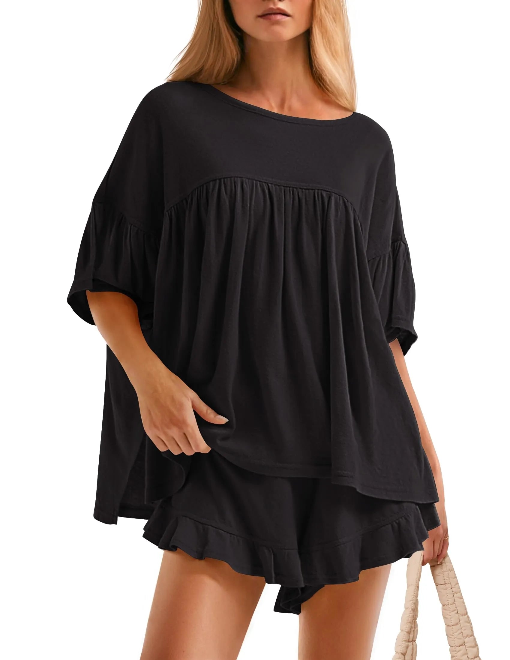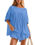 Women's Ruffle Short Sleeve Tops and Shorts Casual Loose Oversized Lounge Sets