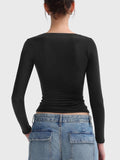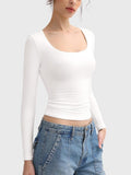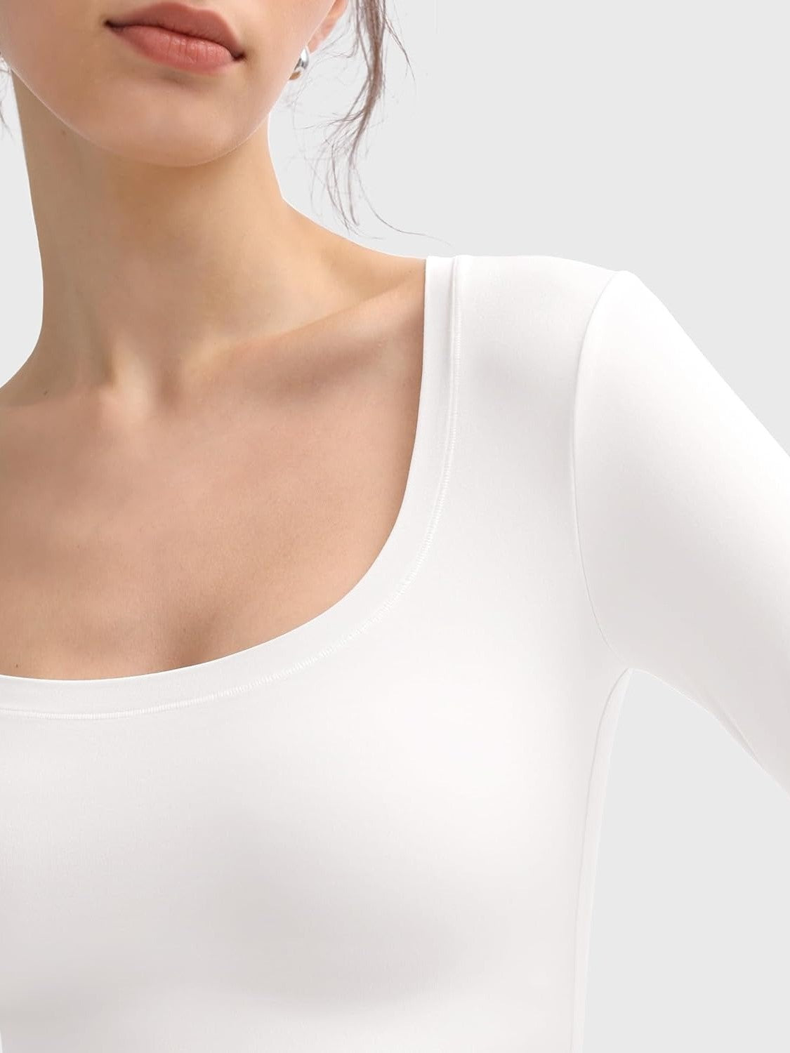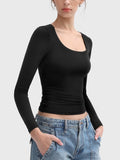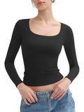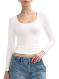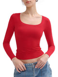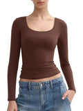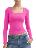 Women's Scoop Neck Slim Fit Long Sleeve Tops Double Lined Basic Tee