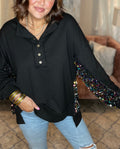 The Sequin Colorblock Henley Sweatshirt is a striking and trendy addition to your wardrobe. It will be a new favorite in your closet!
