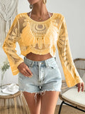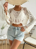 Women's Sexy Lace Floral Mesh Crop Top Cover-up Beach Swimsuit