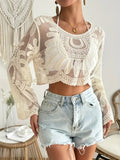 The perfect summer outfit for a full day! Cute for daytime and a little sassy for night!! Exquisite lace mesh fabric, this long sleeve cover up keeps you cool and comfortable in the hot weather. It's also a great way to dress up casual items.