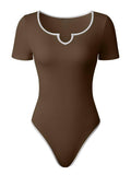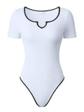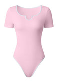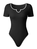 This short-sleeved women's bodysuit features a sexy V-neck design that highlights the neck line. There are two buttons at the crotch for easy on and off. It is also very convenient when going to the toilet.