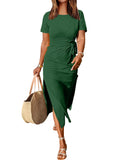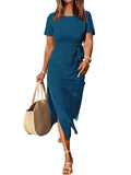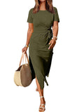 Women's Short Sleeve Crewneck Tie Waist Split Dress