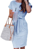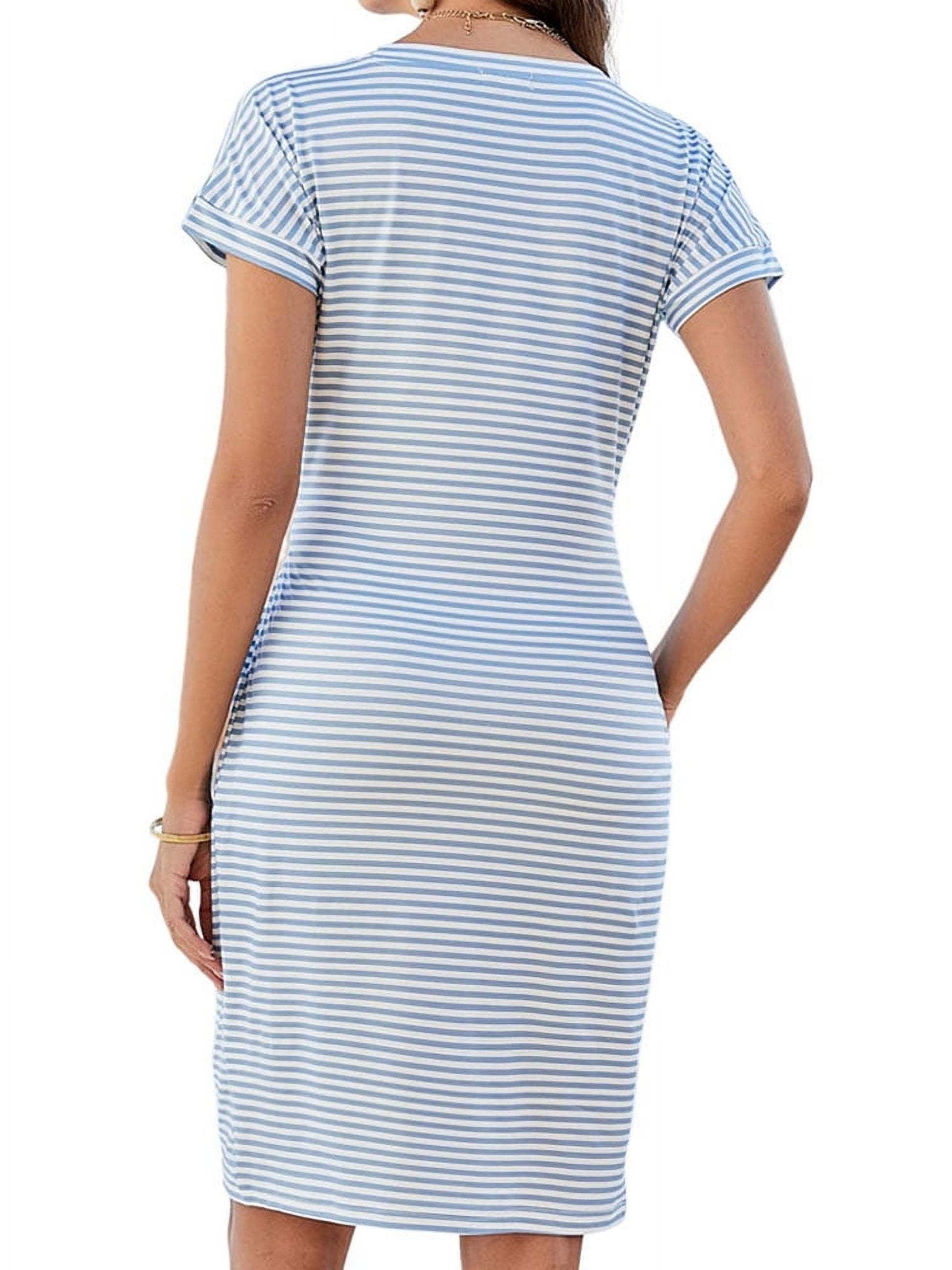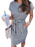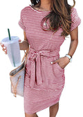 Women's Short Sleeve Striped Tie Waist T-Shirt Dress