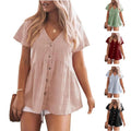 Women's Short Sleeve V Neck Blouse Button Down Shirt Loose Casual Ruffle Hem Babydoll Peplum Top