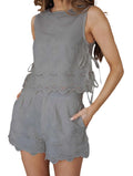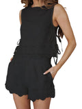 A bohemian crop must-have, this set features delicate eyelet cutouts for increased breathability and comfort. Exquisite hollow design creates a unique lace texture, perfect for a free and unrestrained look.