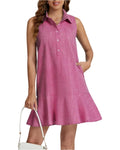 Elevate your wardrobe with this Sleeveless Button Waist Shirt Dress. Designed for style and comfort, it features a flattering waist detail and classic button-down front, making it perfect for both professional and casual occasions.