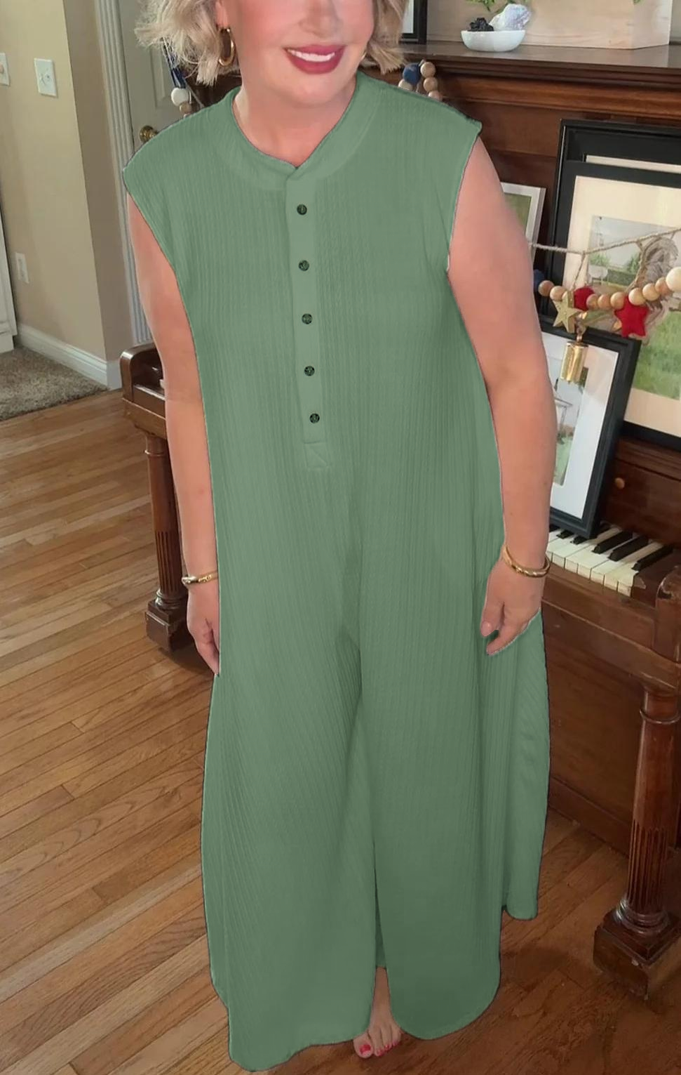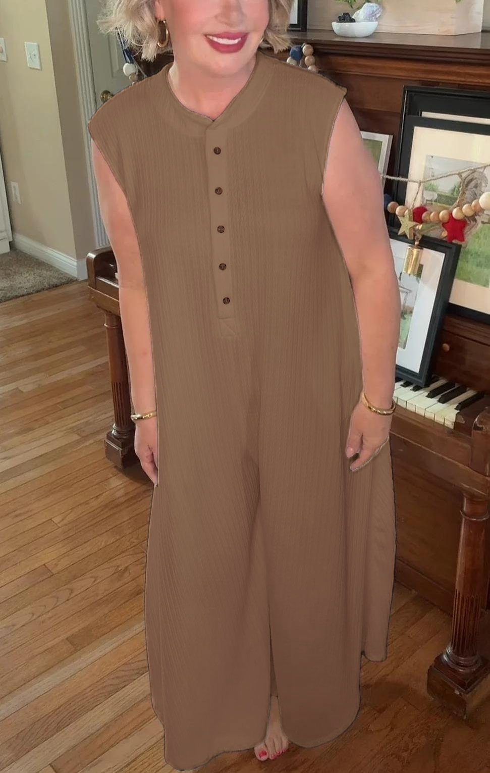 Women's Sleeveless Ribbed Wide Leg Jumpsuit