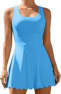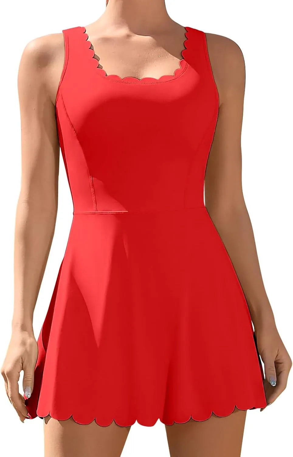 This women's sleeveless suspender athletic dress combines style and functionality with Scalloped details and convenient pockets, perfect for active lifestyles and casual wear.