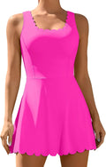Women's Sleeveless Suspender Scalloped Athletic Dresses with Pockets