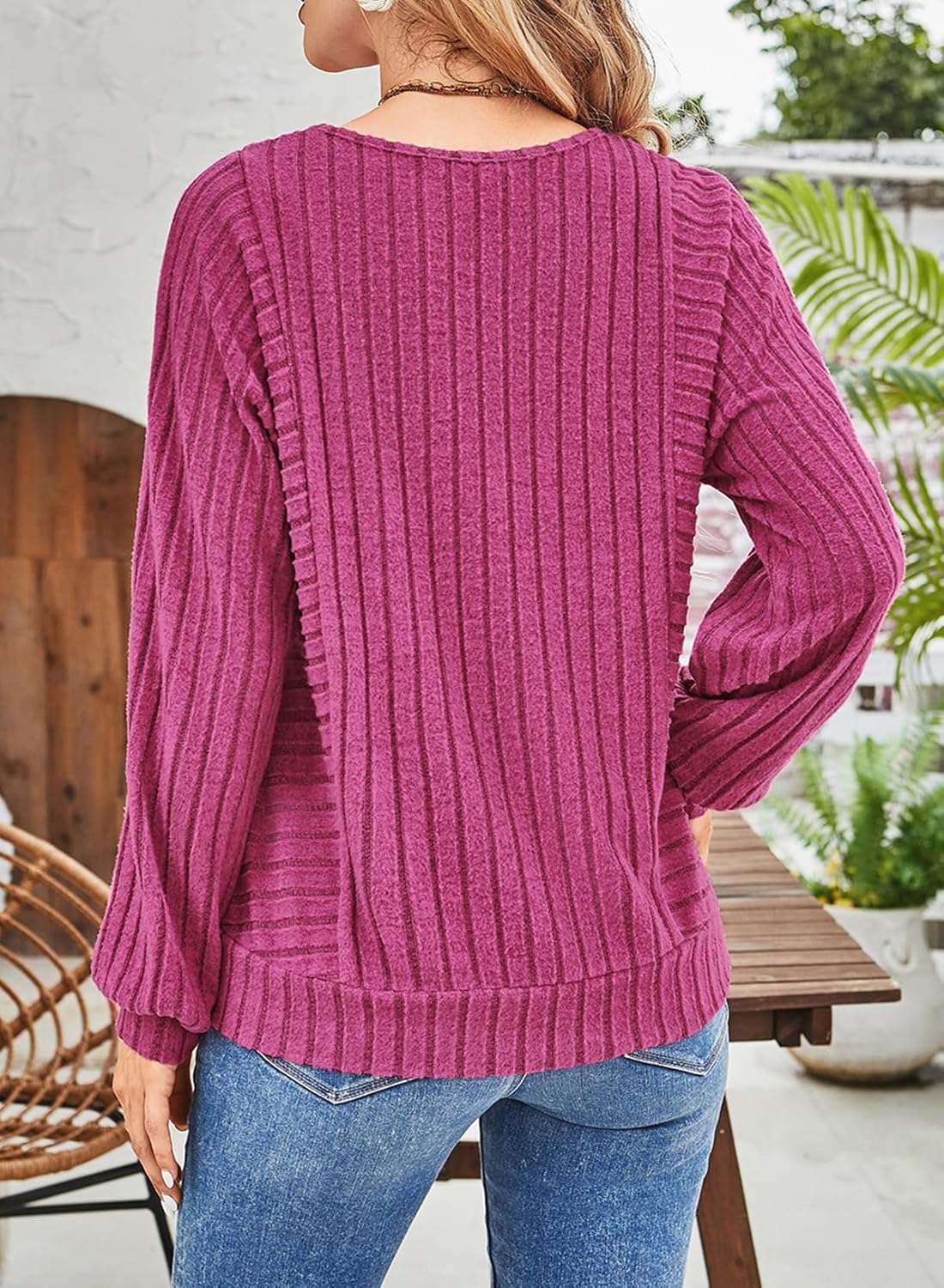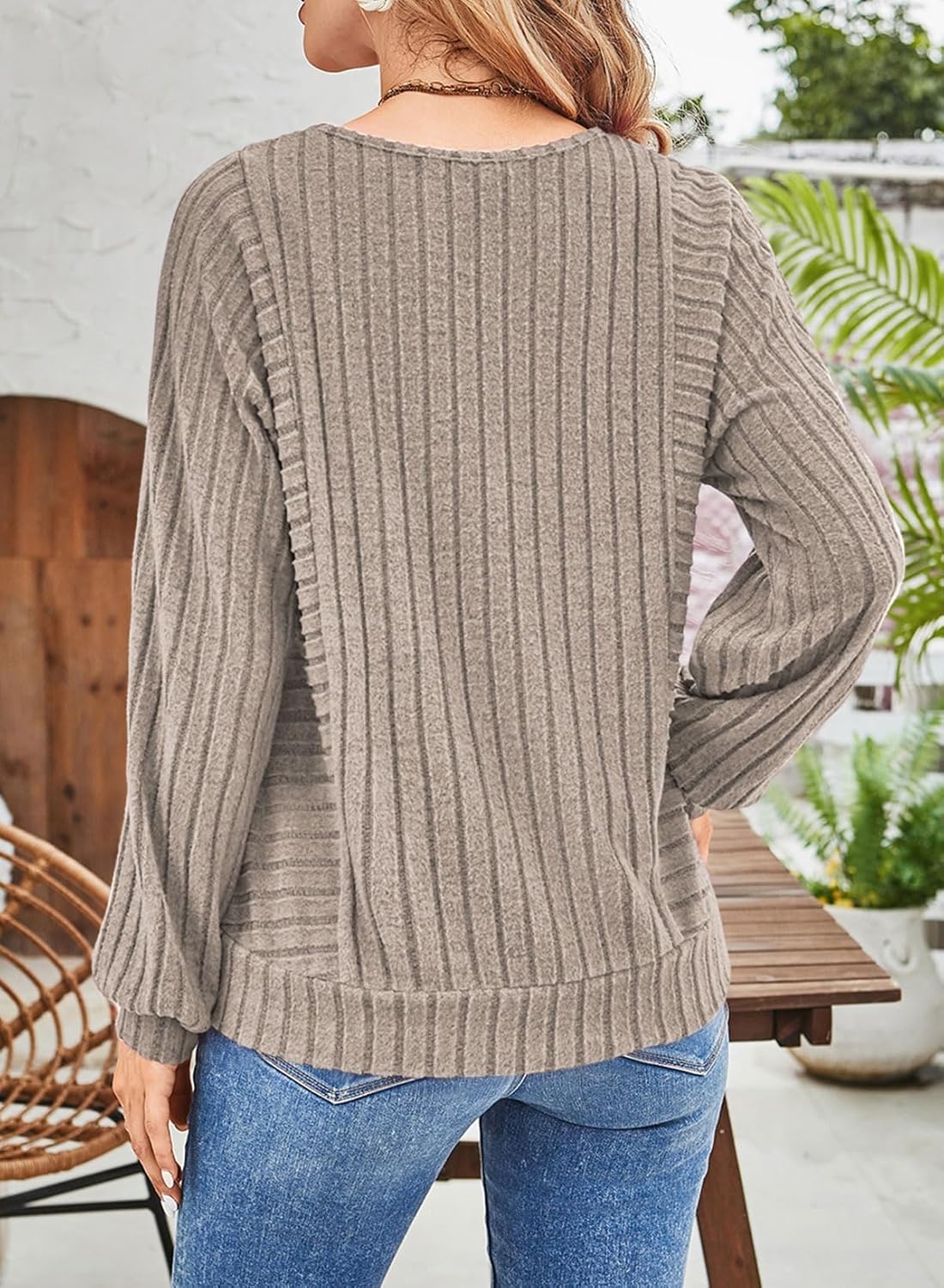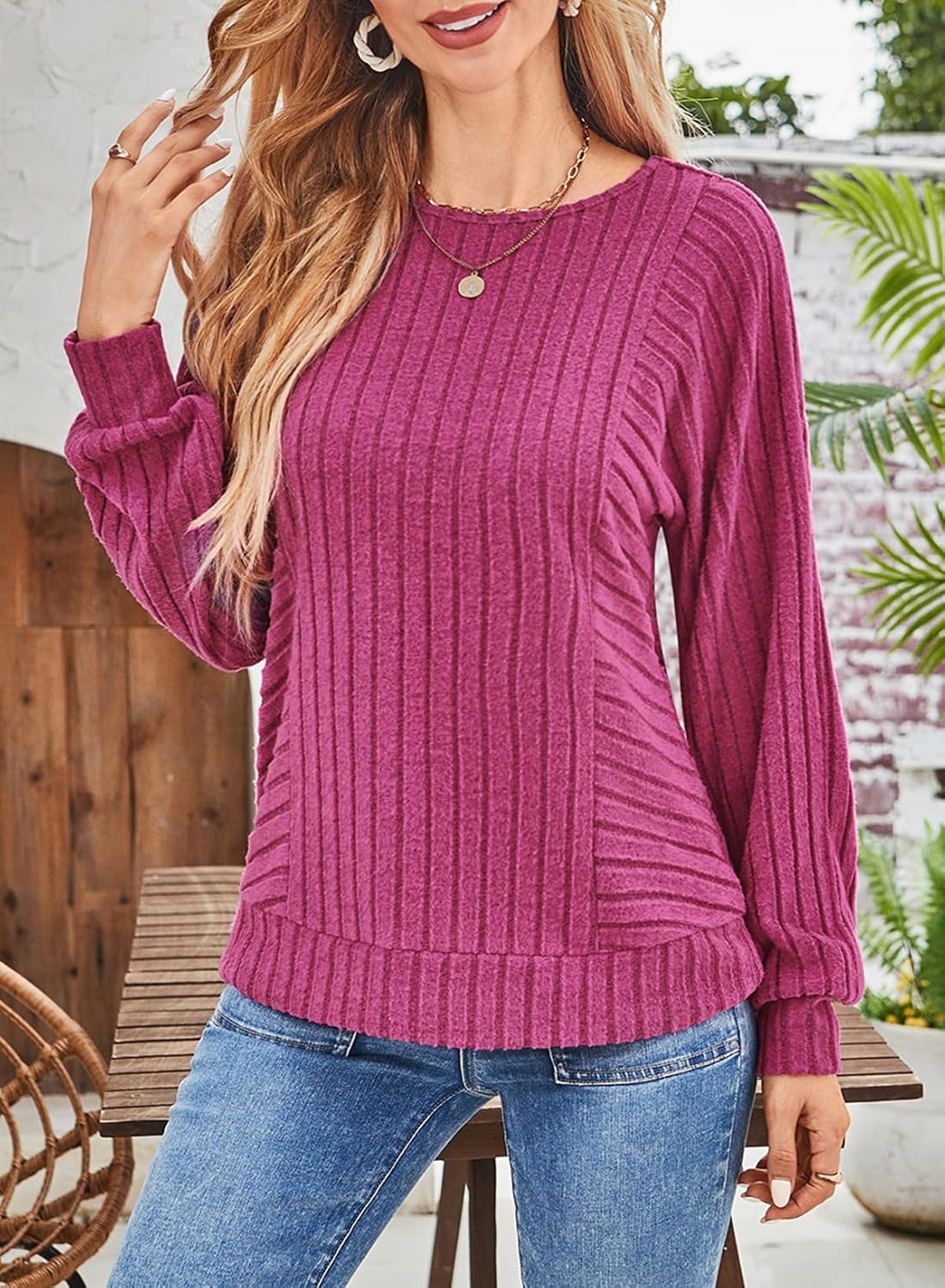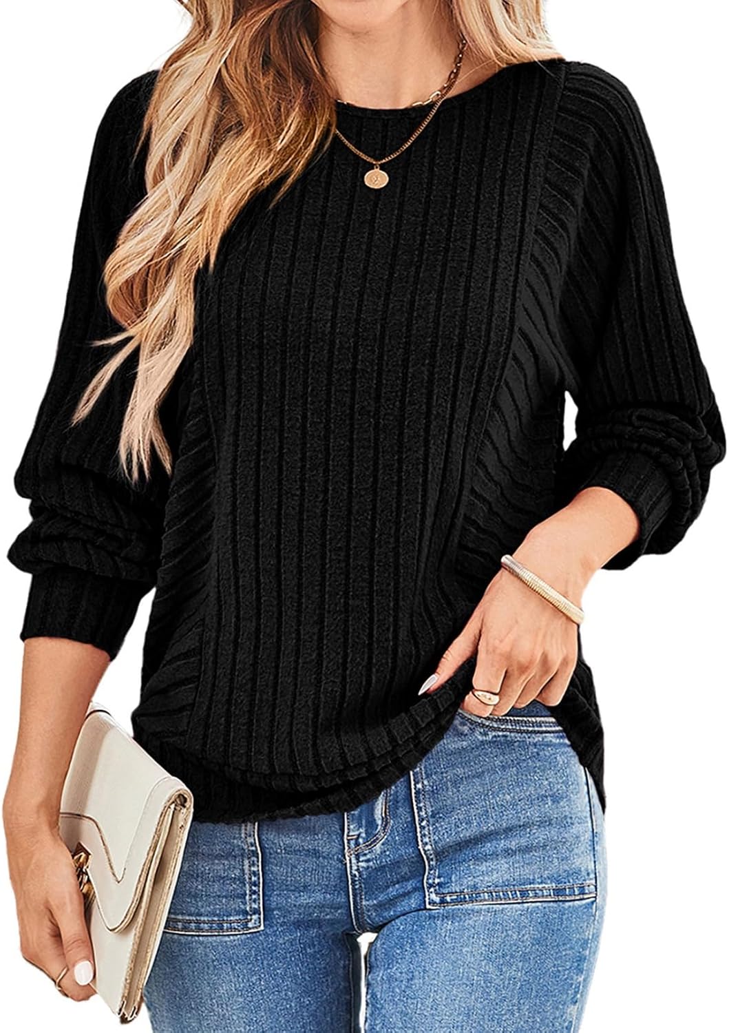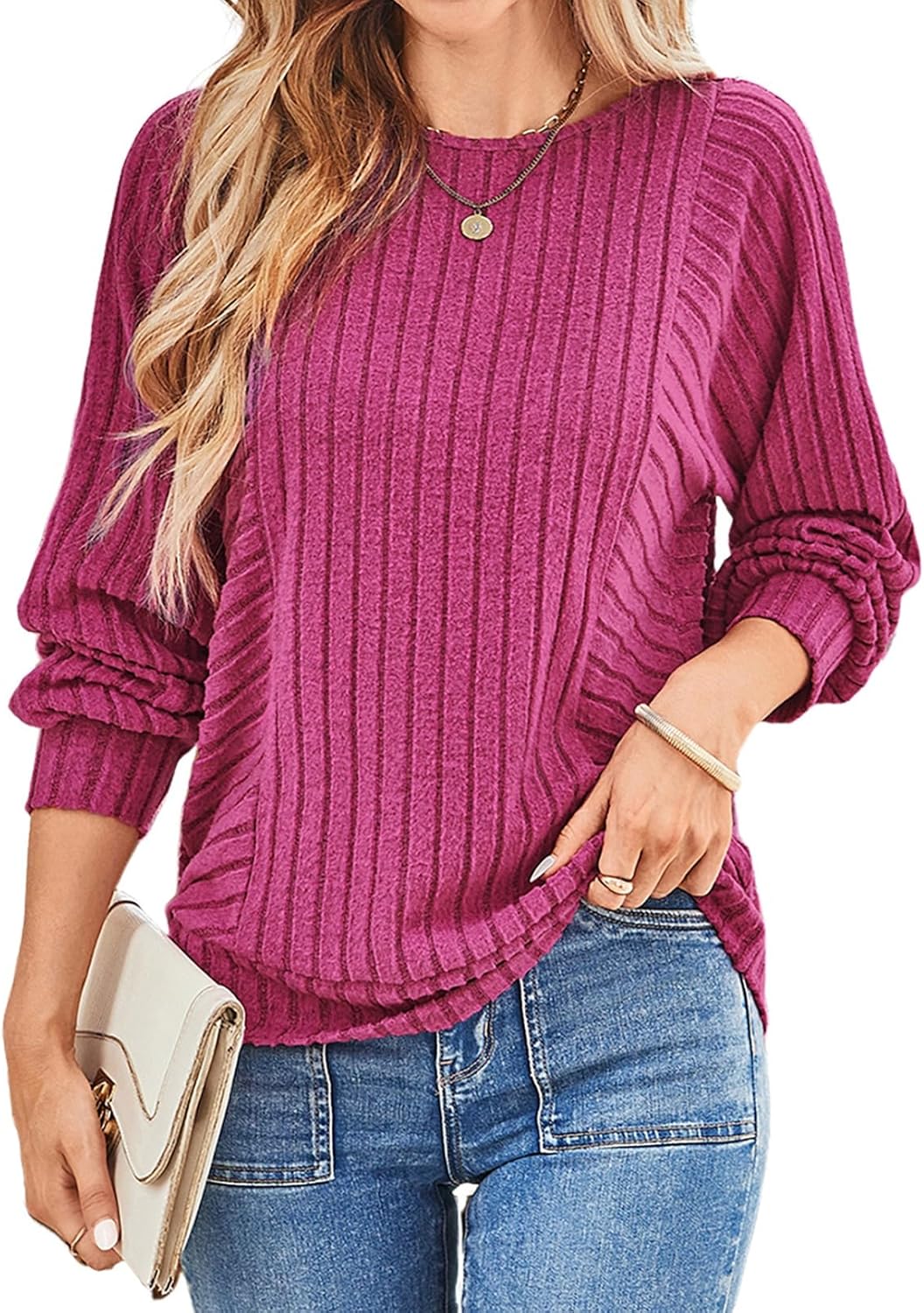 Womens Soft Long Sleeve Crewneck Shirts Fall Casual Loose Fit Knit Tops