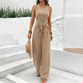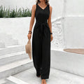 Women's Solid Color Waist Tie Jumpsuit
