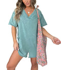 Upgrade your wardrobe with our elegant Women's Solid Mineral Short Sleeve Jumpsuit. Made of high-quality fabric, this jumpsuit features a flattering fit and classic design. Perfect for a variety of occasions, this versatile piece will become a staple in your closet.