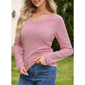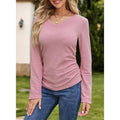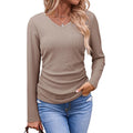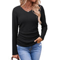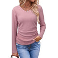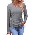 Womens Solid Ruched Basic Tunics Casual V Neck Long Sleeve Shirts Tops