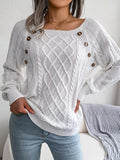 Women's Solid Textured Fake Buttons Raglan Sleeve Sweater