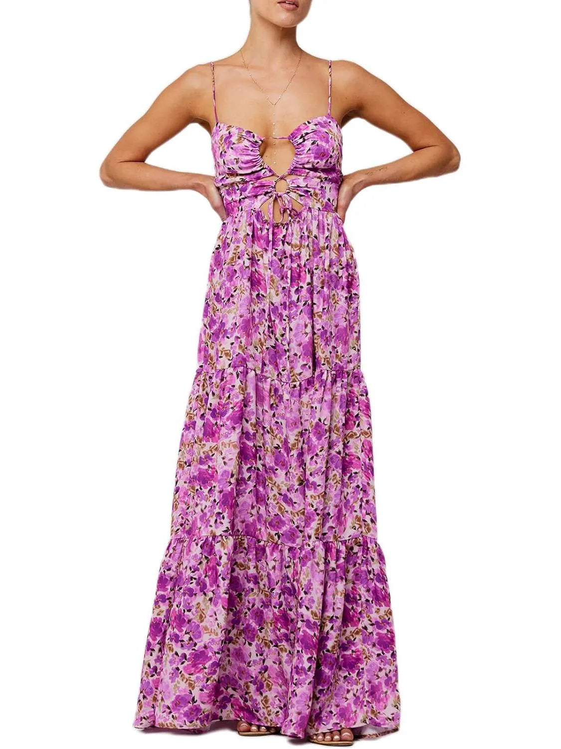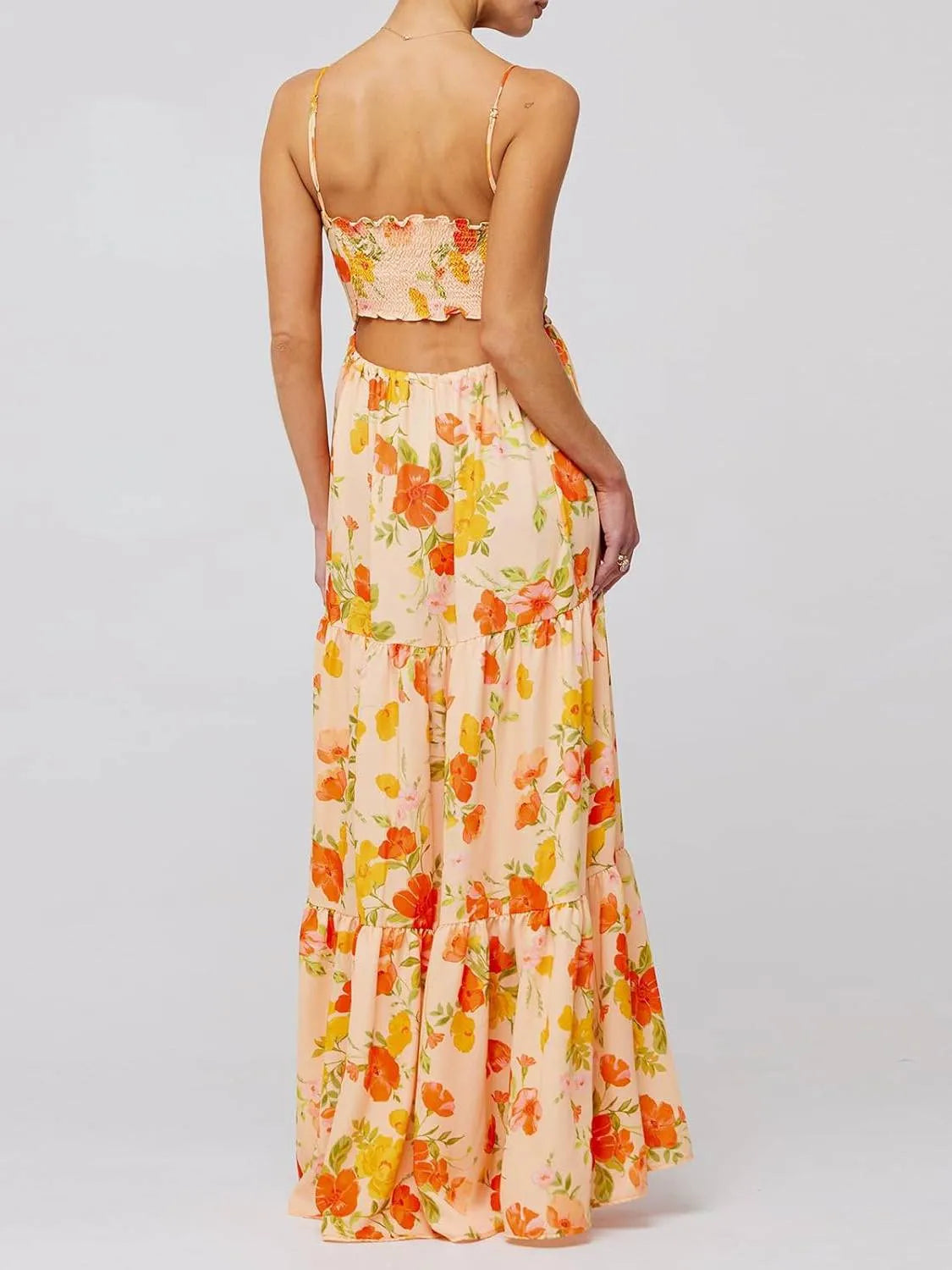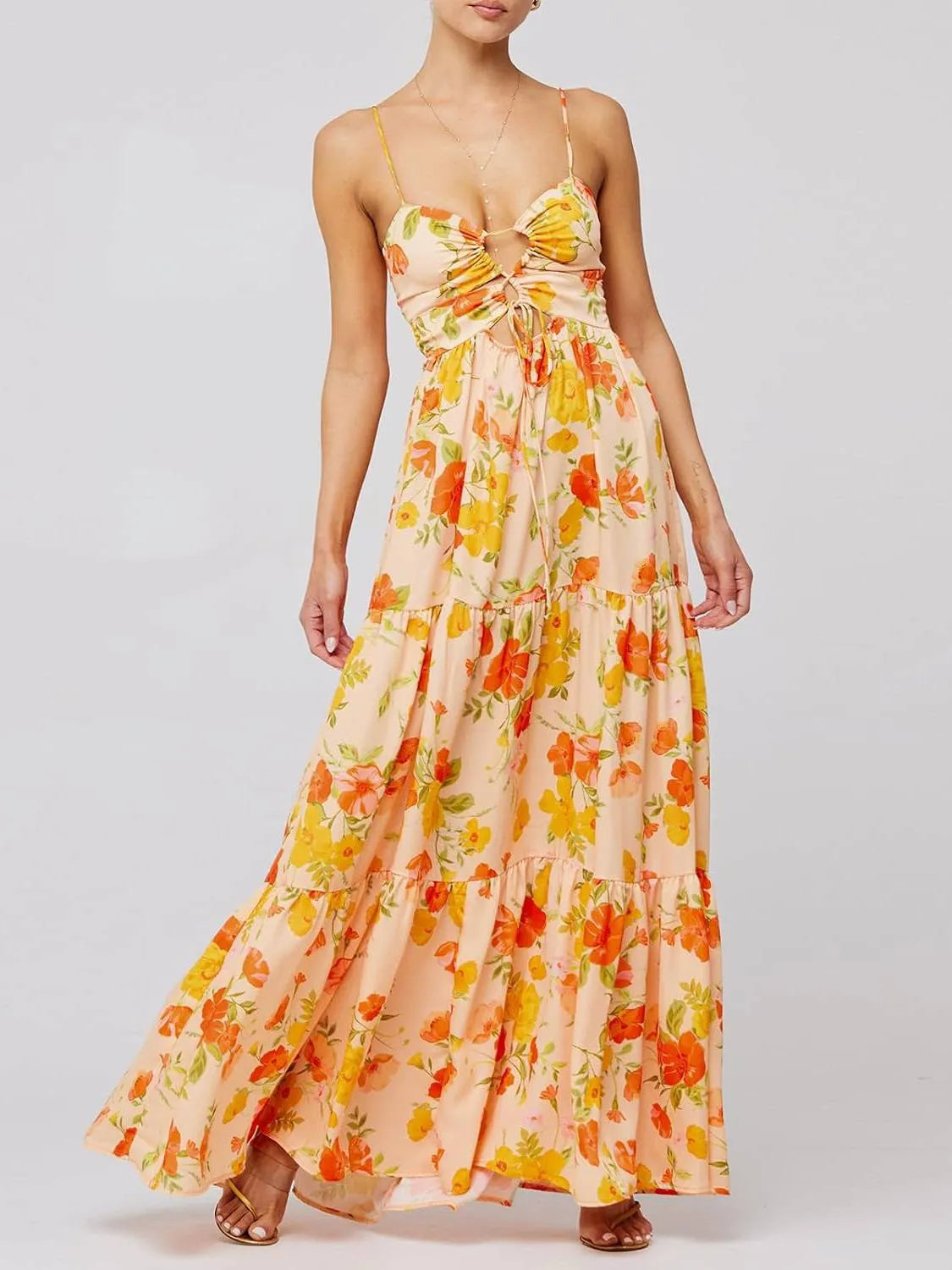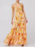 Women's Spaghetti Strap Front Floral Tie-up Boho Beach Vacation Dresses