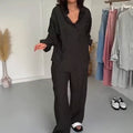 CHIC WIDE-LEG PANTS: Relaxed wide-leg cut featuring practical side pockets for added convenience and subtle style, offering ease of movement and comfortable wearing throughout the day.