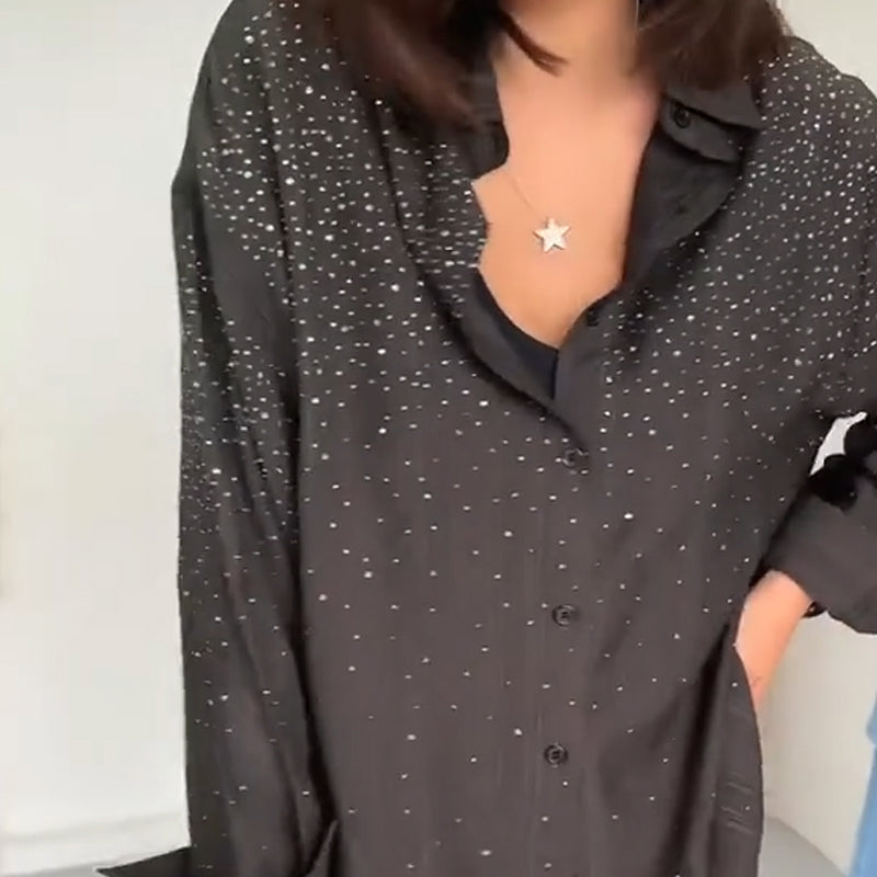 STYLISH COLLARED SHIRT: Long-sleeve shirt with a timeless lapel collar creates a sleek silhouette, adding a touch of formal elegance to your casual style for more versatile wear.