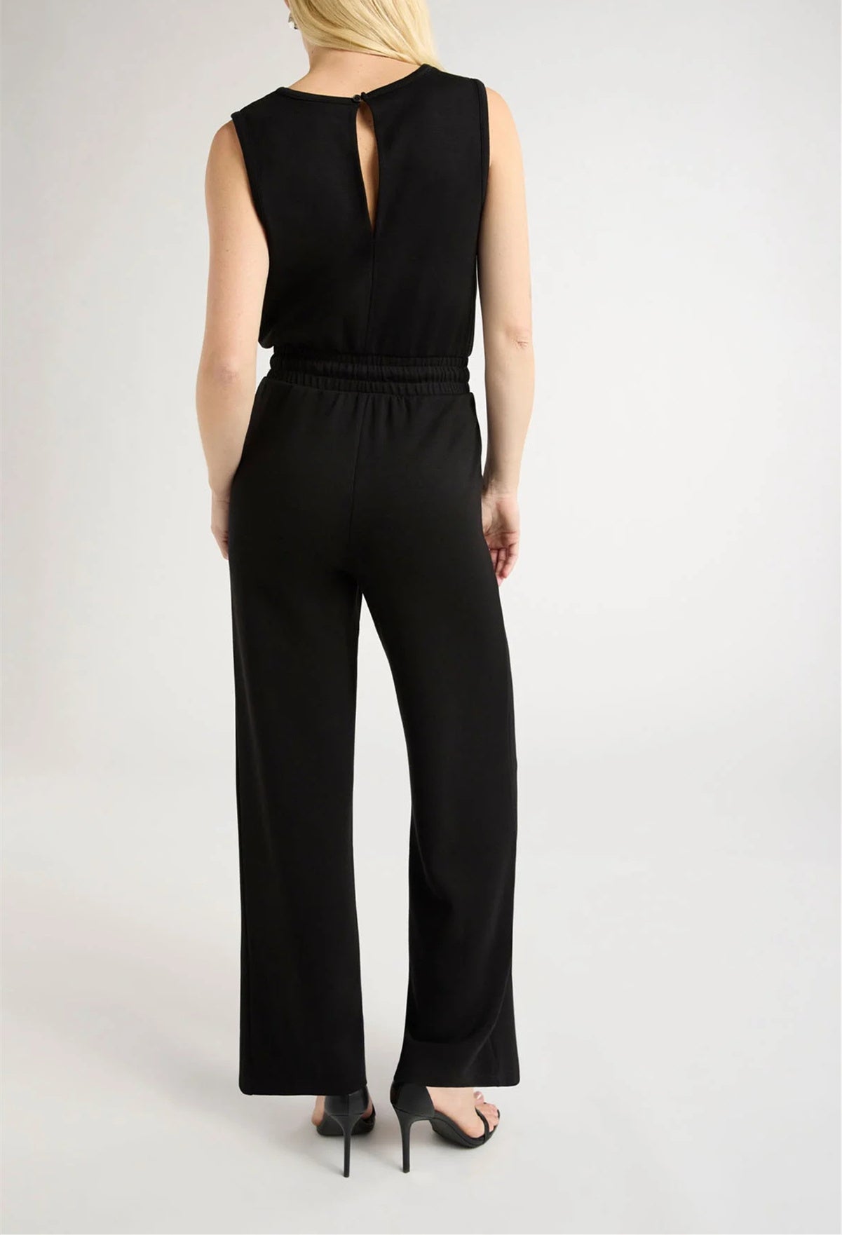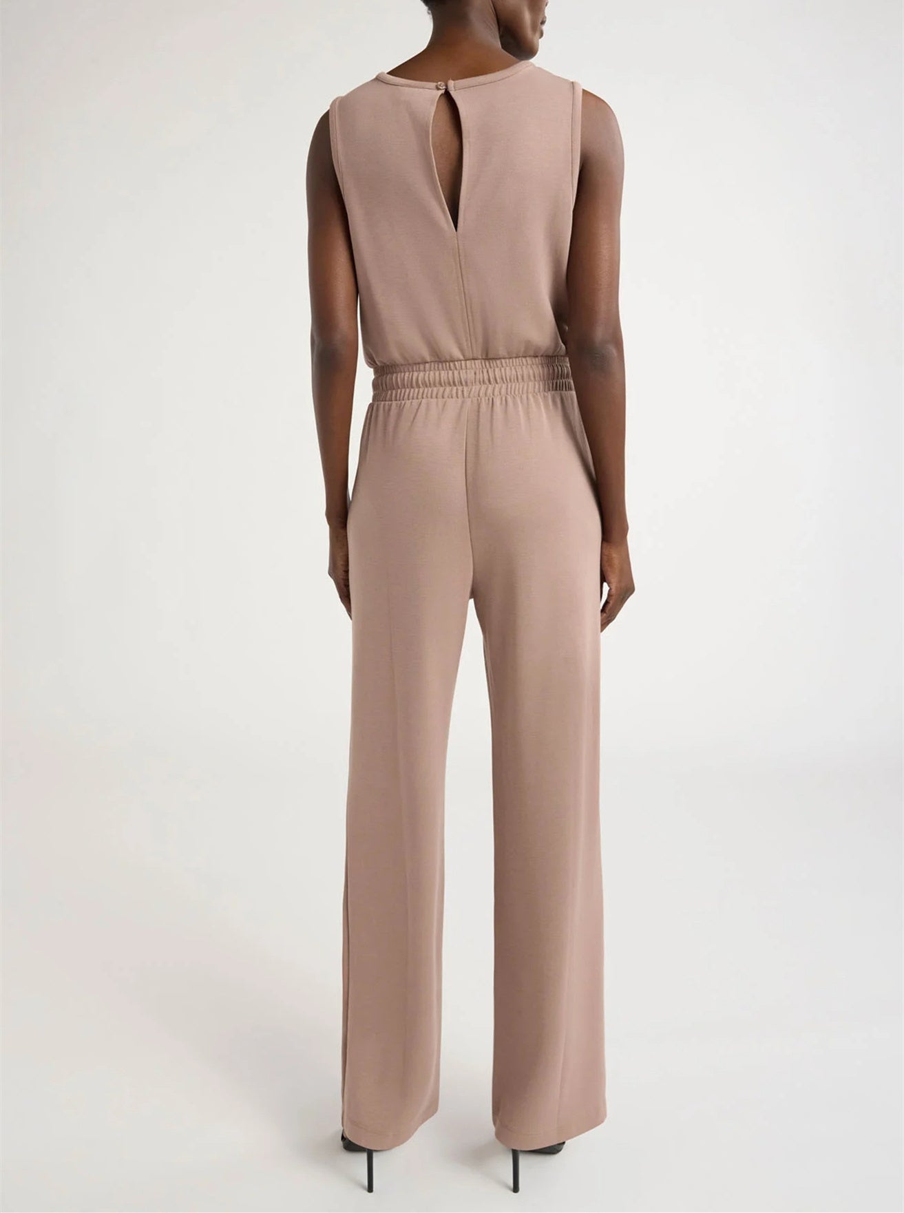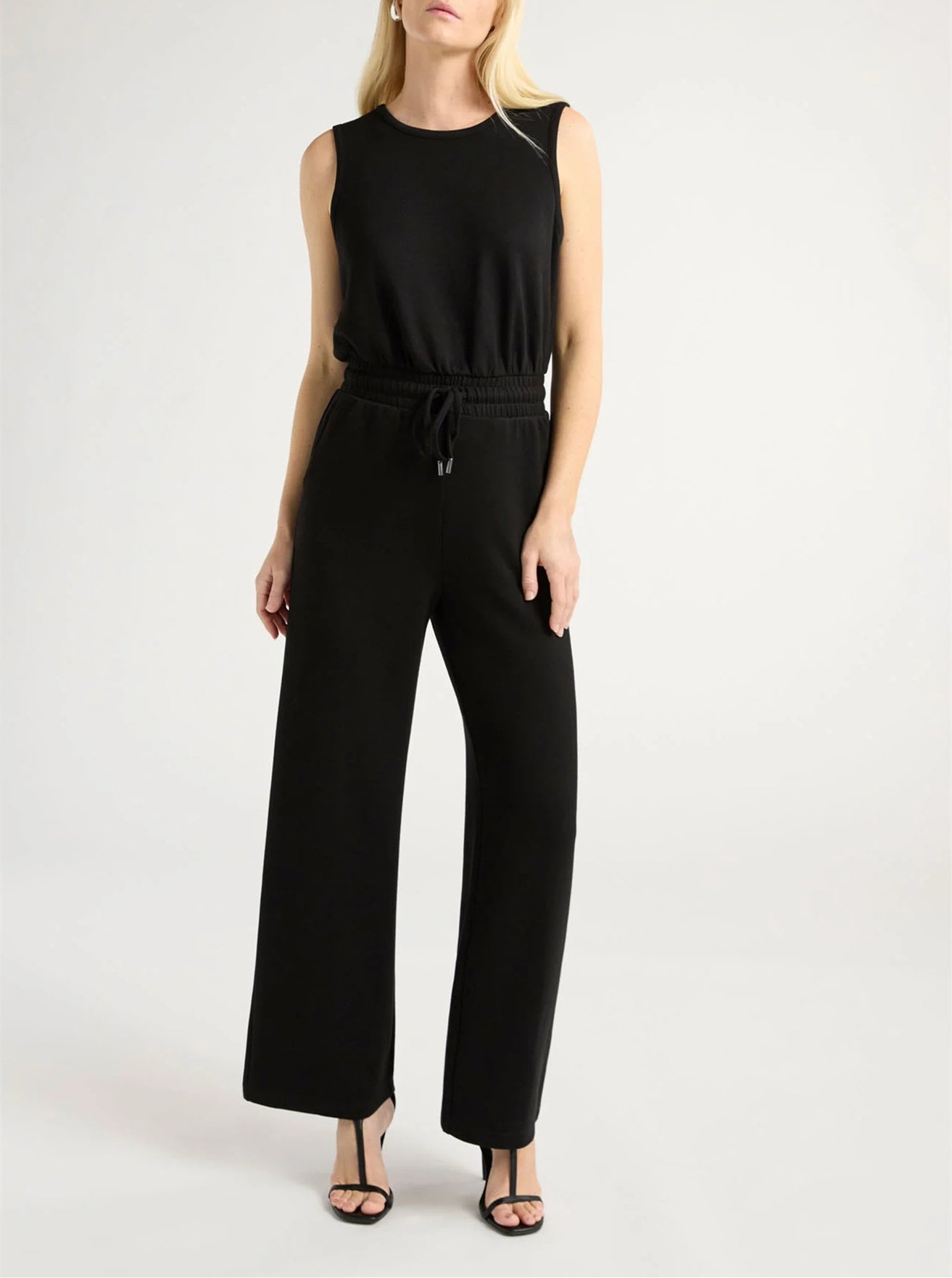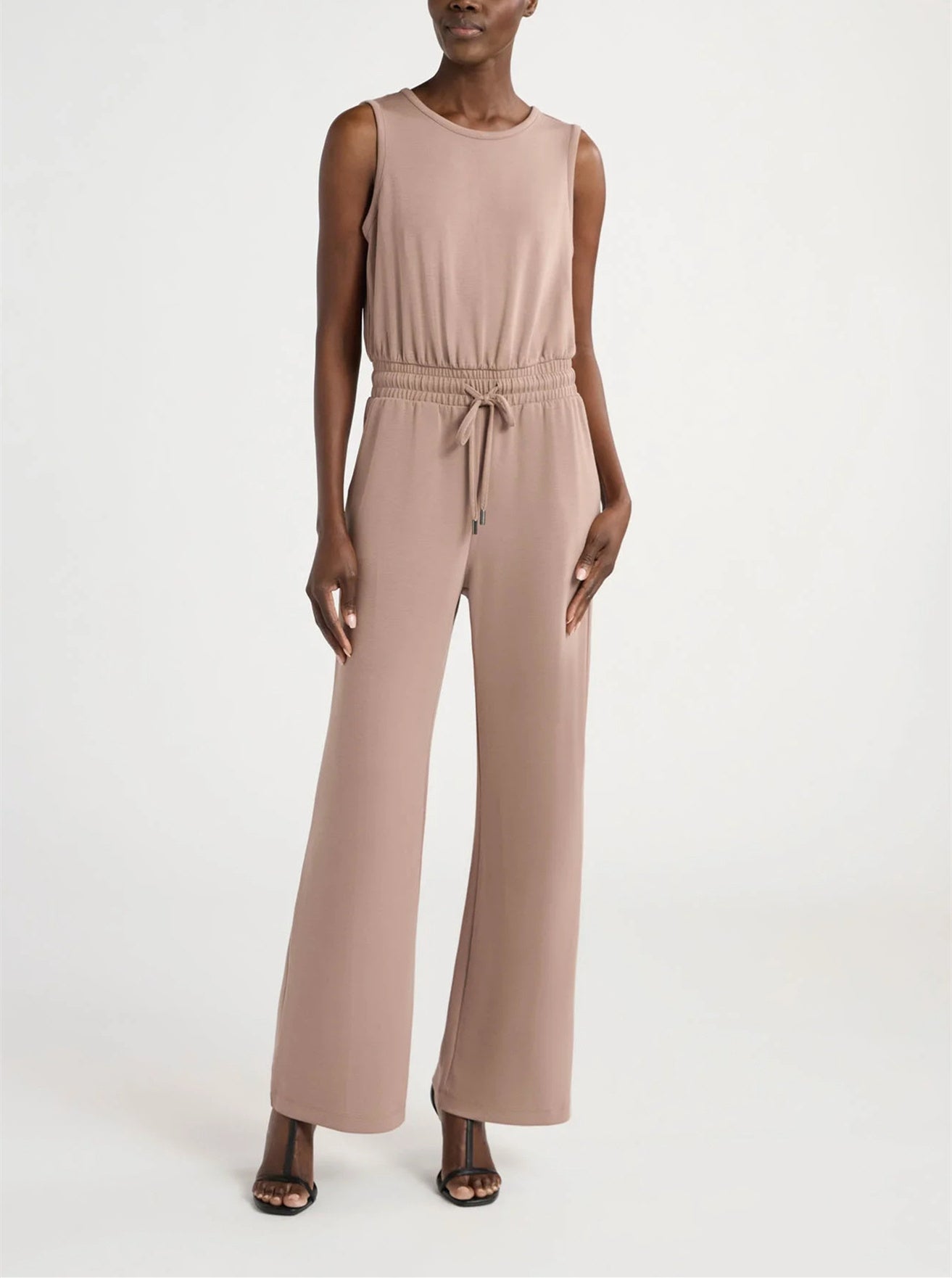 Our wide-leg jumpsuit is made from a modern, on-trend fabric that's smooth and slightly stretchy, offering the perfect blend of comfort and style. The sporty design features a drawstring waistband for a custom fit. The sleek wide-leg silhouette creates a sleek, modern look that can be worn casually or dressy.