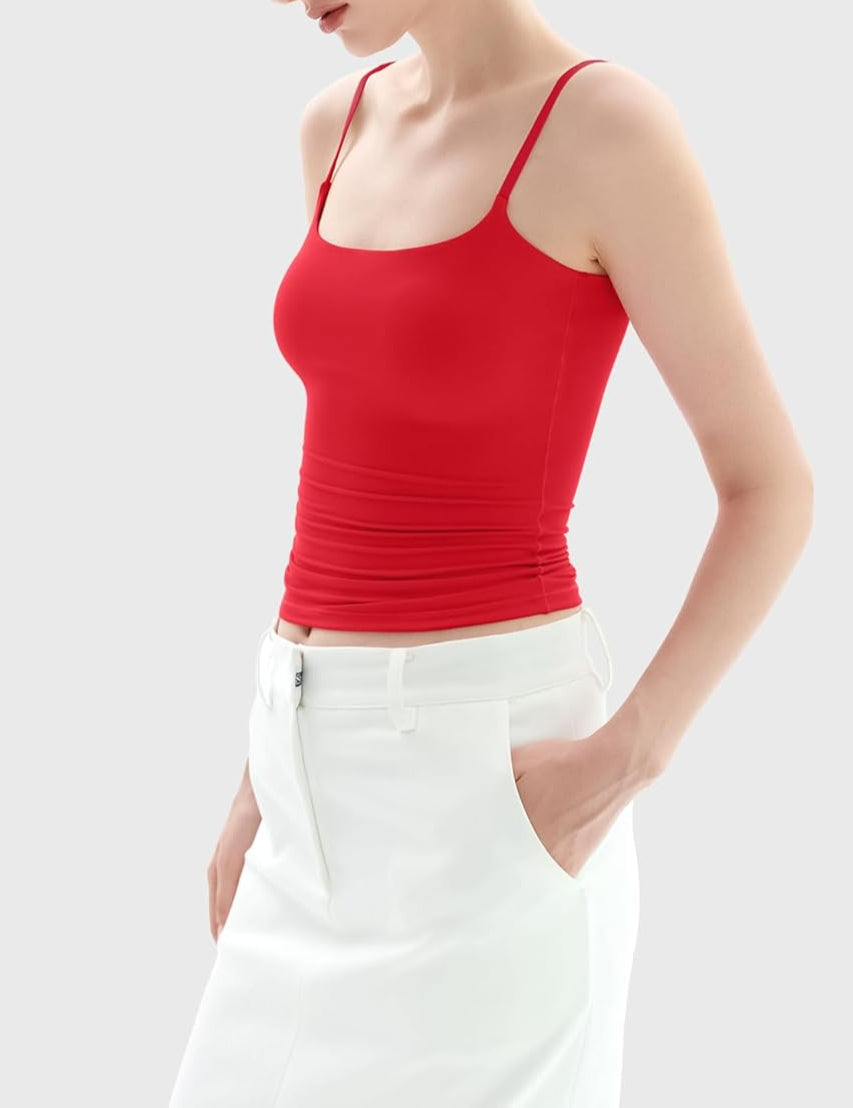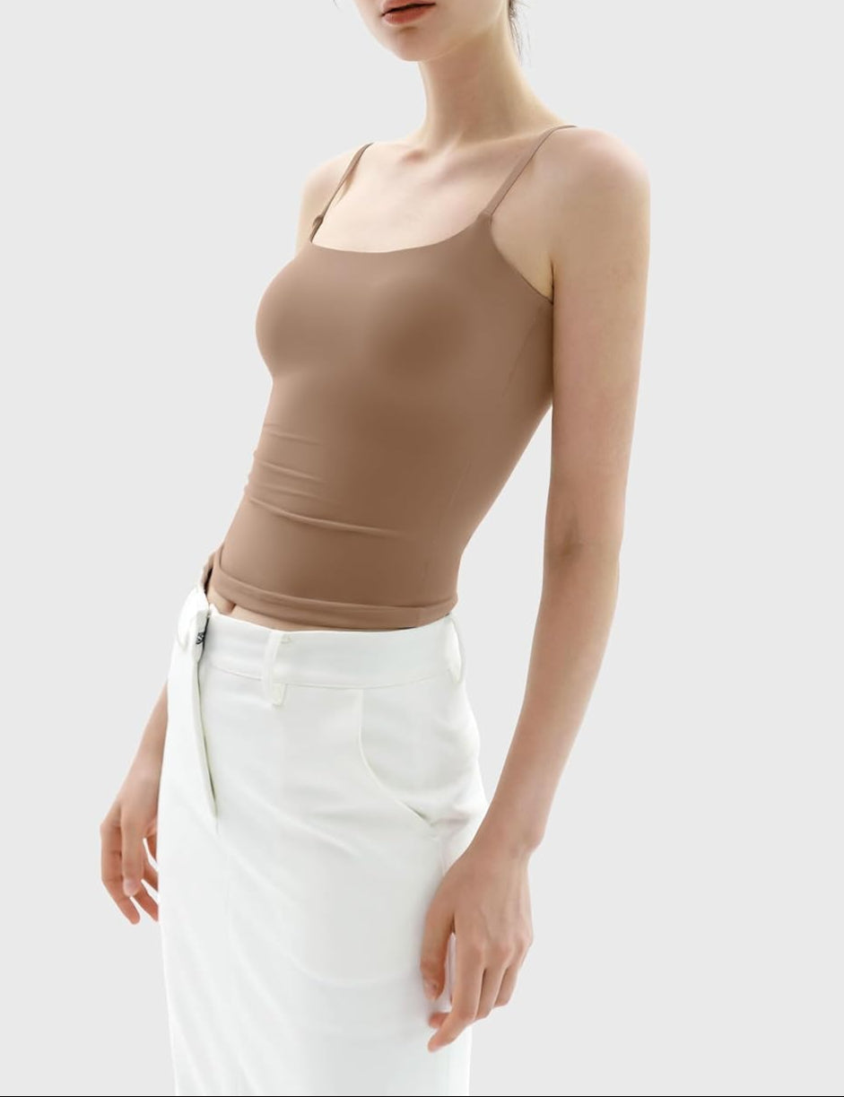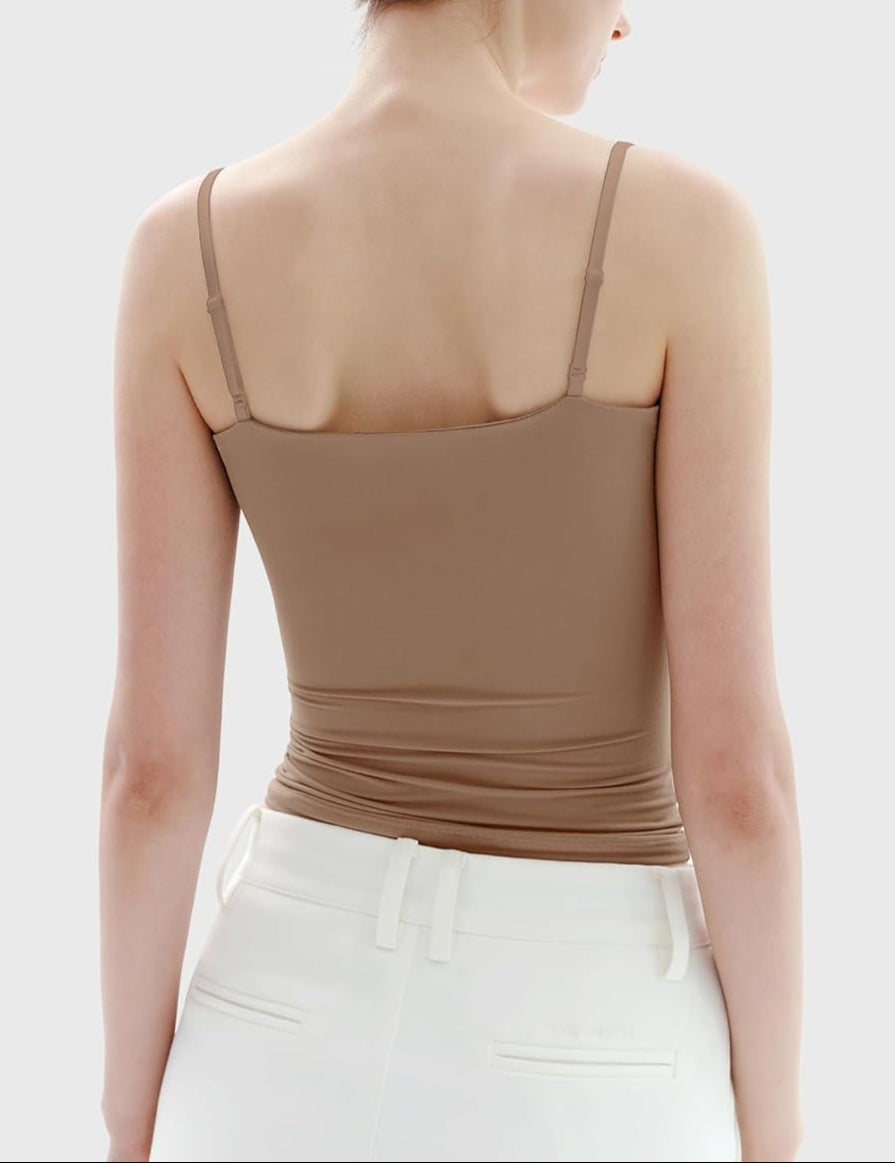 Women's Square Neck Adjustable Spaghetti Straps Basic Tank Top