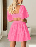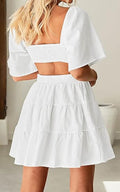Women's Square Neck Casual Short Sleeves Crossover Elastic Waist Party Mini Dress