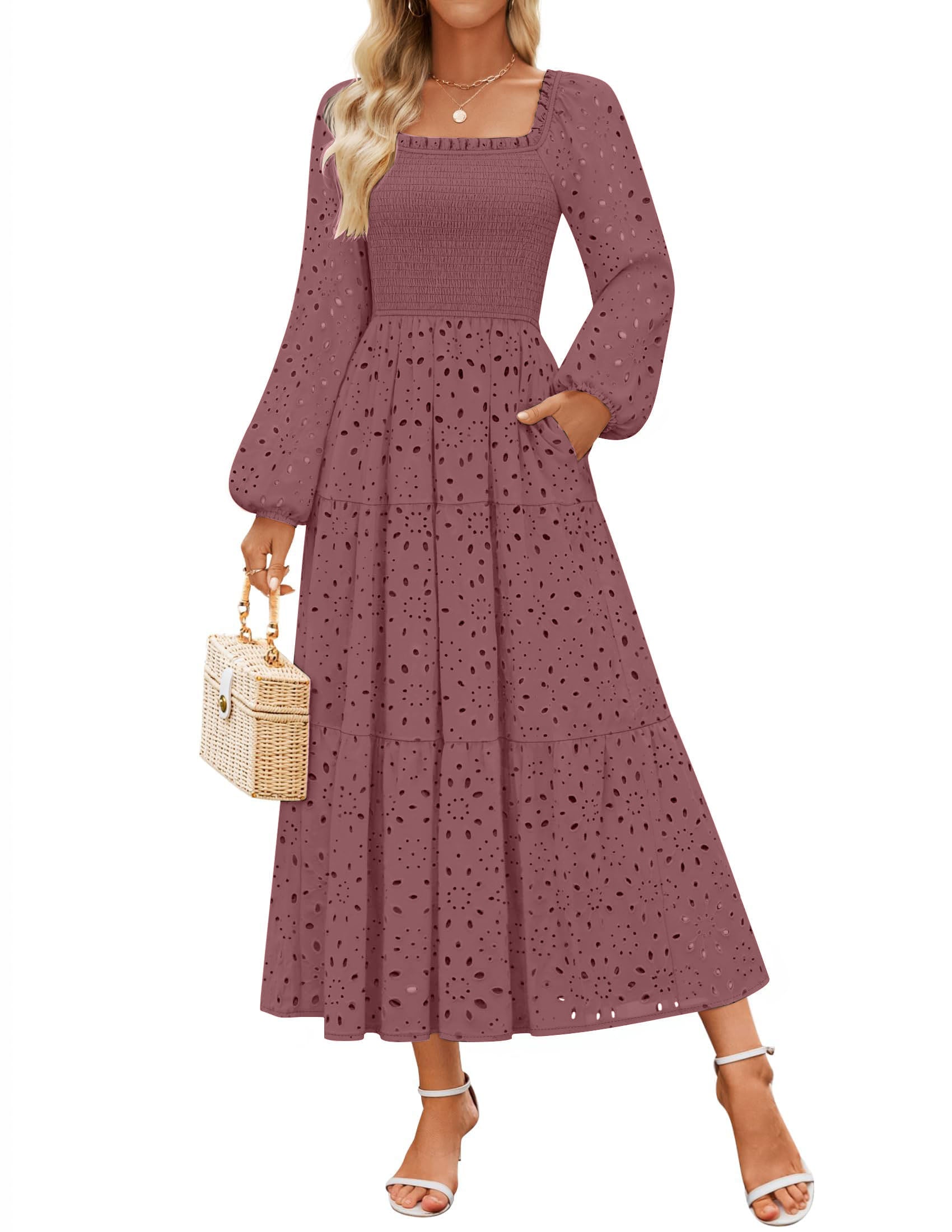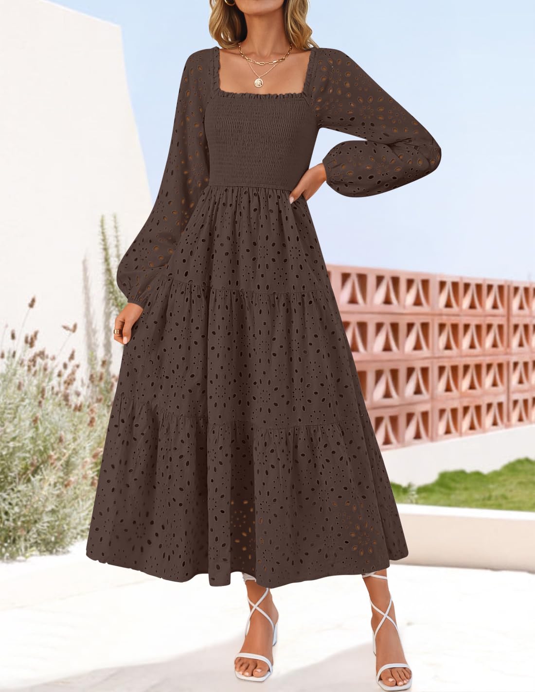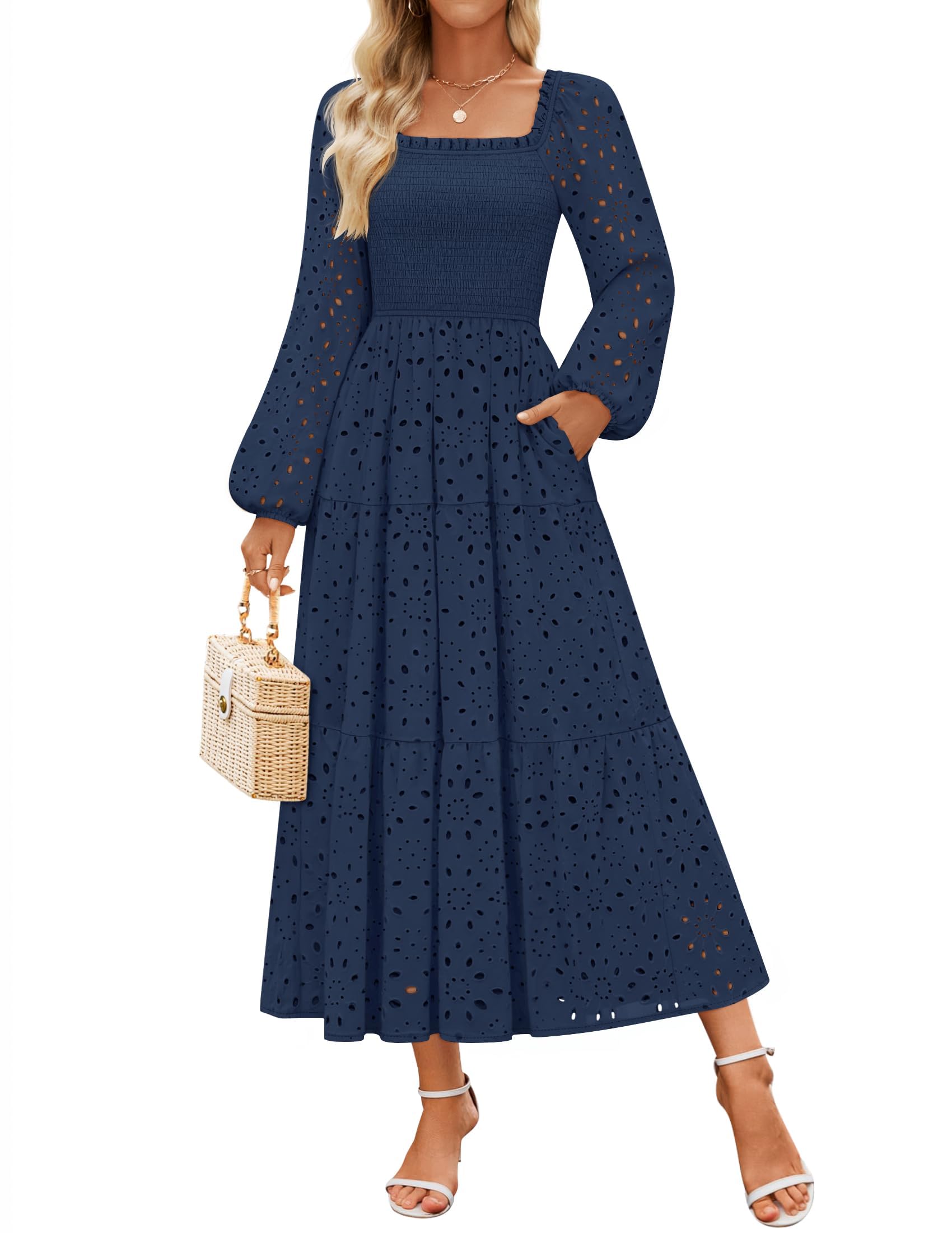 Smocked high waist with elastic stretch effortlessly cinches your natural waistline, while the A-line dress with ruffled tiered hem creates graceful movement. Hidden side pockets add practicality, making this boho dress both chic and functional, all designs create a flowy silhouette that flatters your figure gracefully.