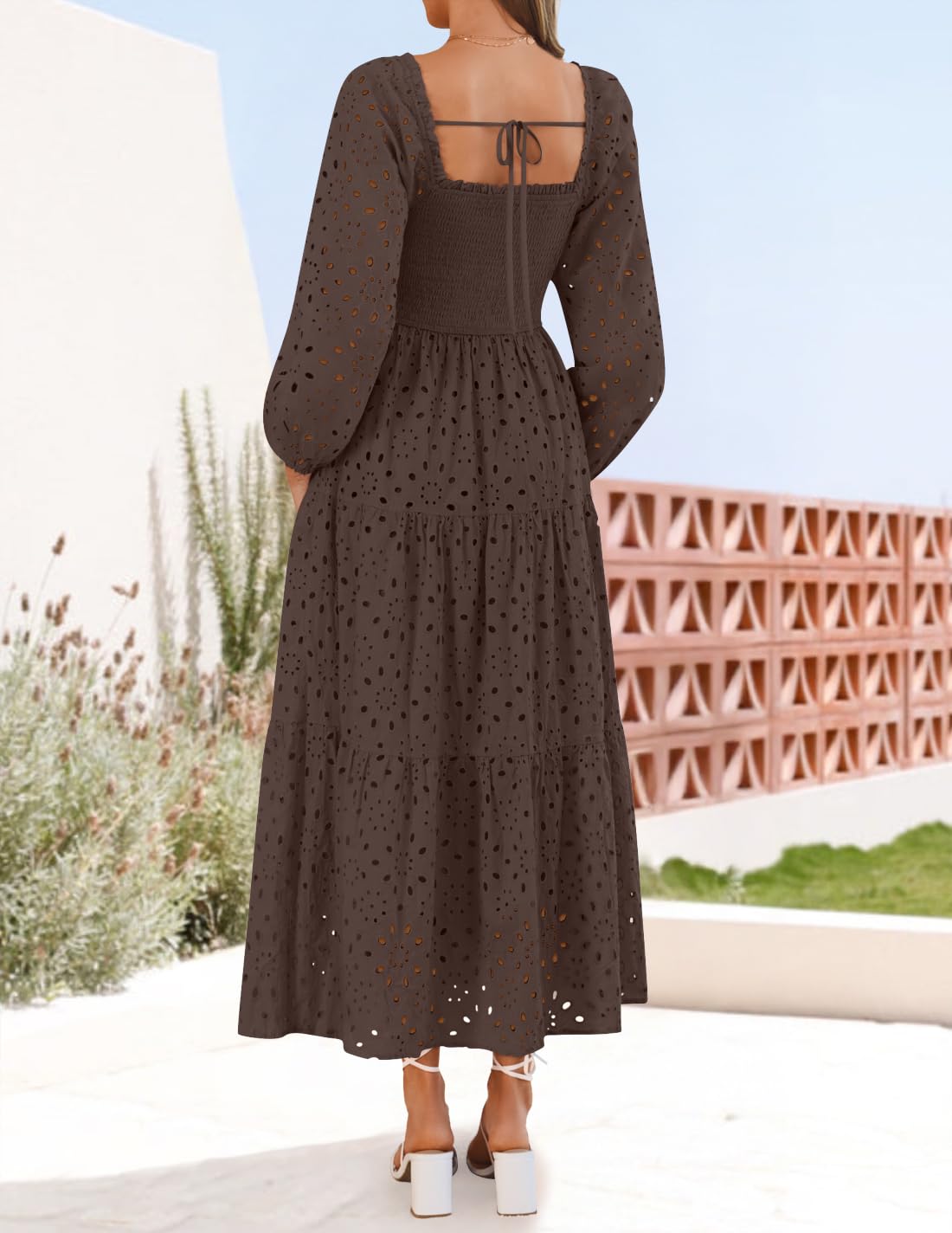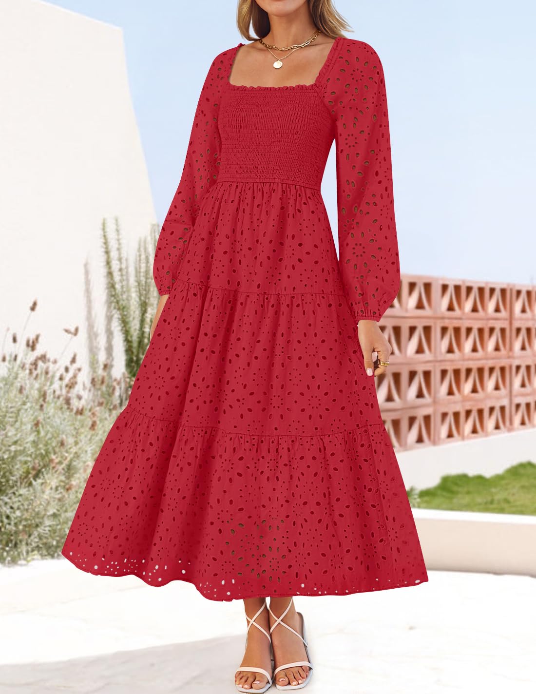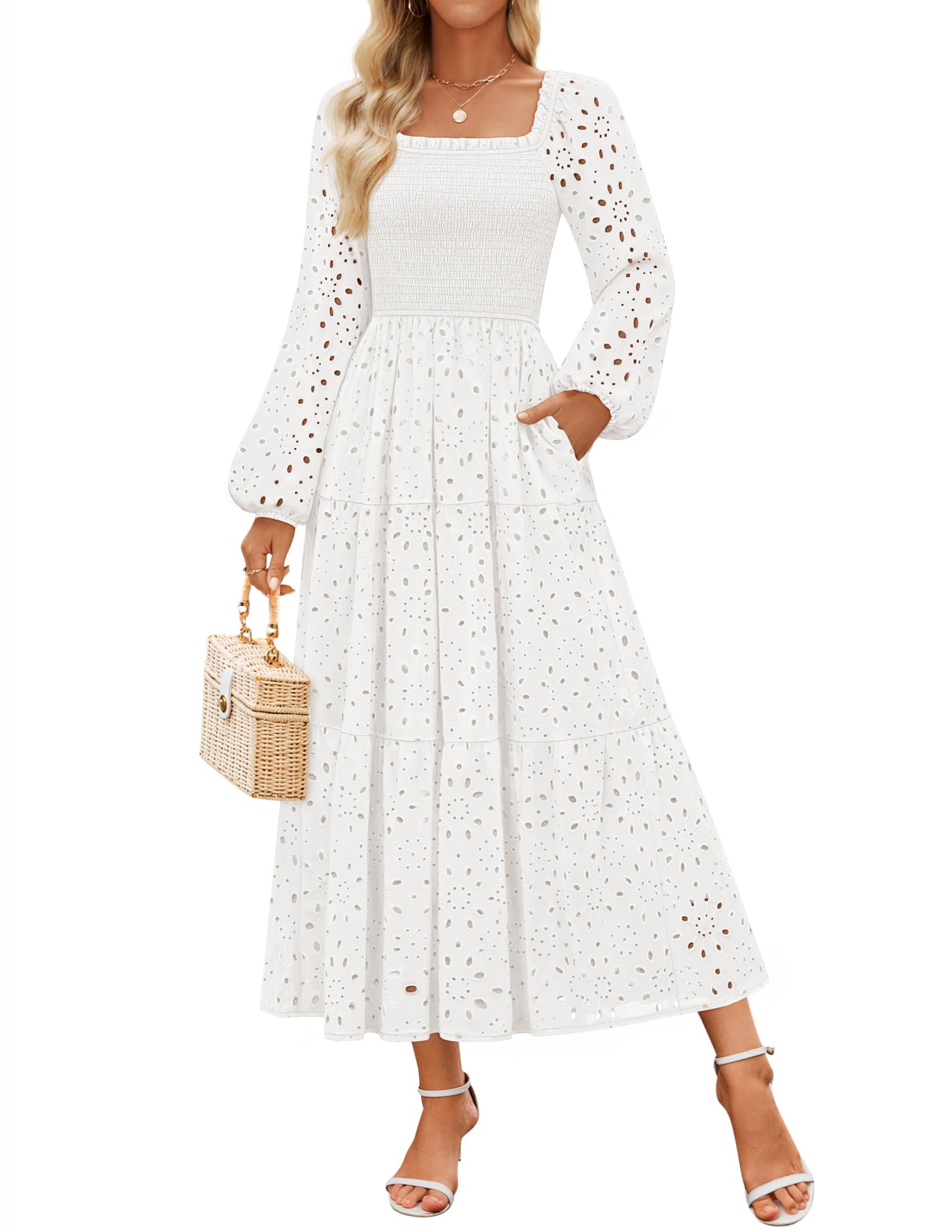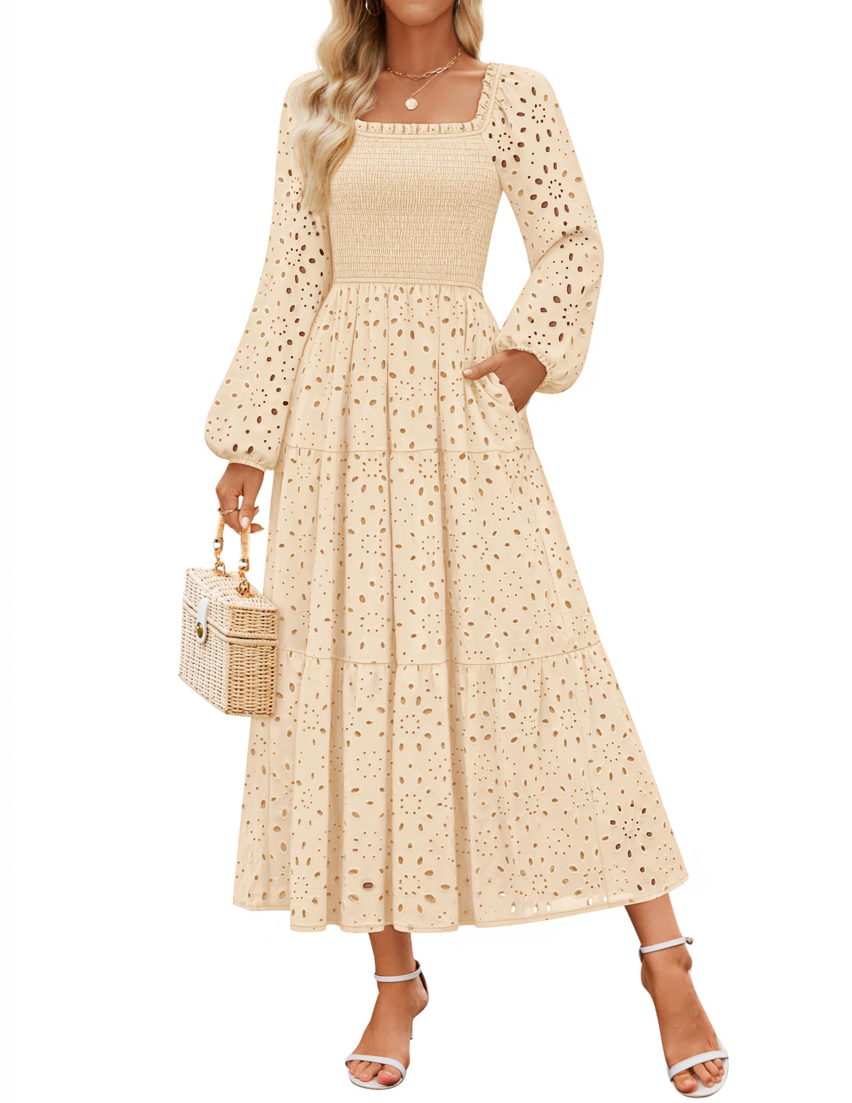 Smocked high waist with elastic stretch effortlessly cinches your natural waistline, while the A-line dress with ruffled tiered hem creates graceful movement. Hidden side pockets add practicality, making this boho dress both chic and functional, all designs create a flowy silhouette that flatters your figure gracefully.