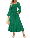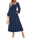 This elegant flowy dress before wearing to enhance its appearance. Crafted from soft, breathable fabric suitable for fall/winter layering, ensuring all-day comfort without compromising style!