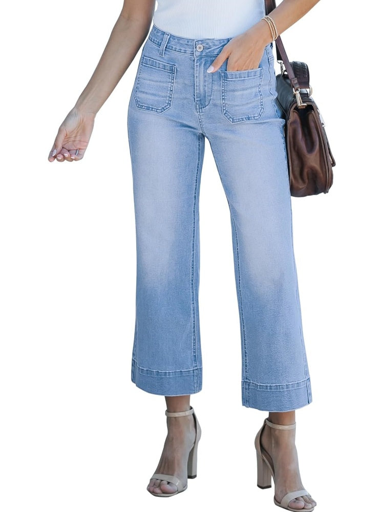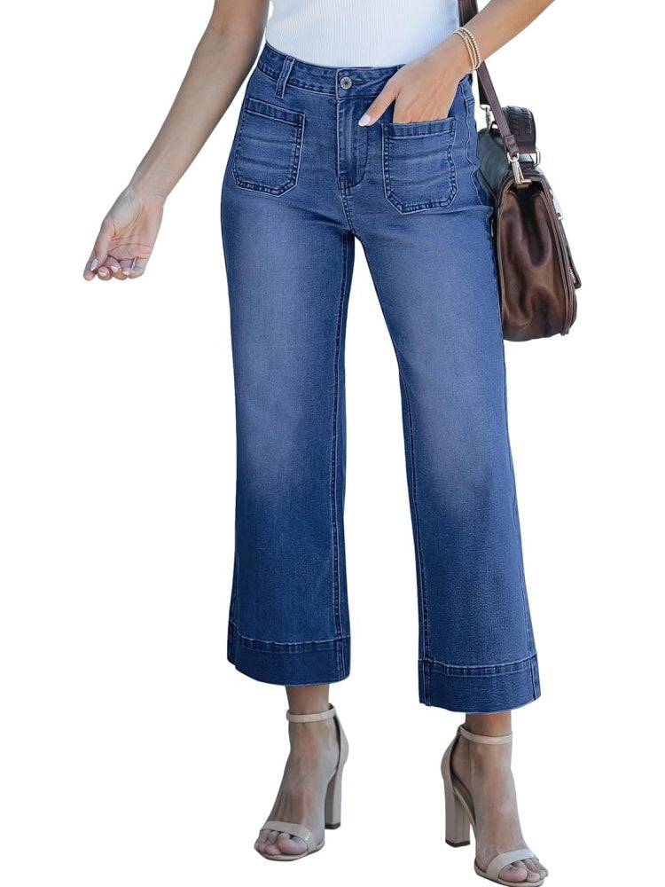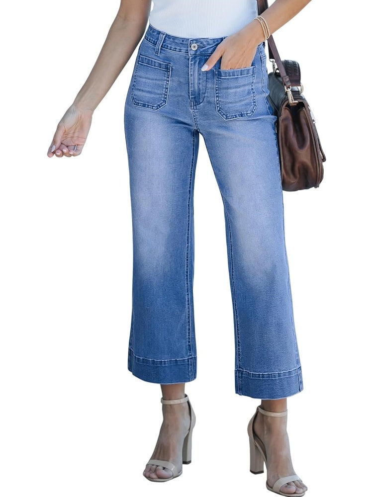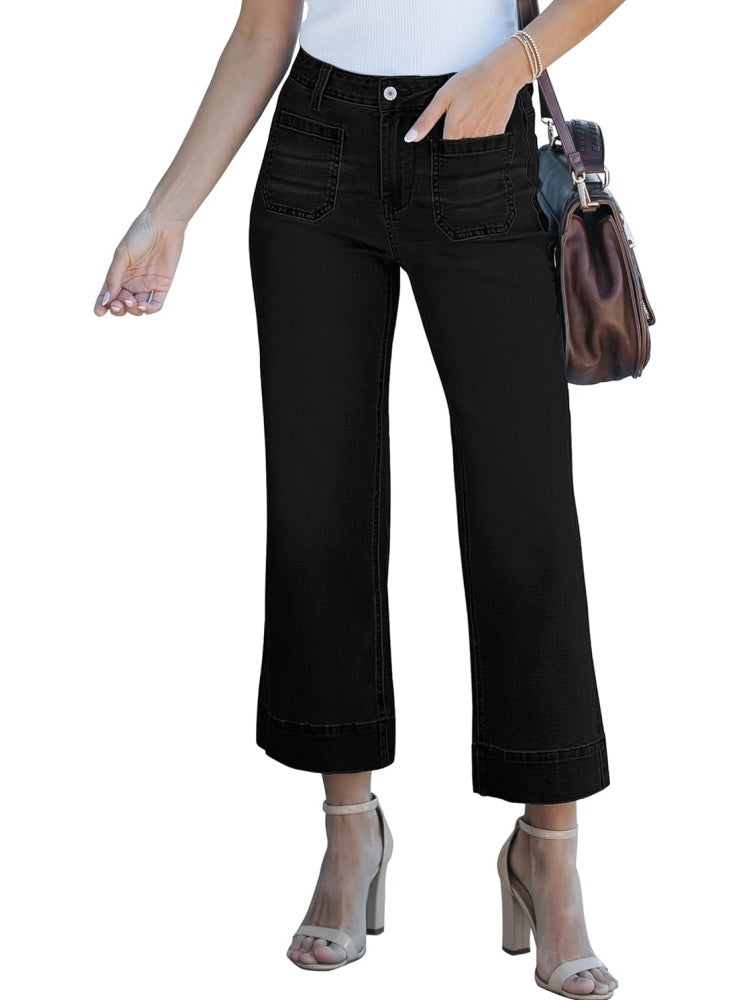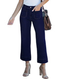 Women's Stretchy Wide Leg Jeans with Patch Pockets