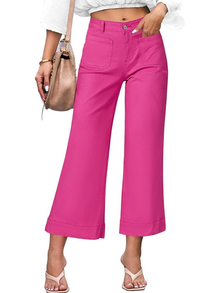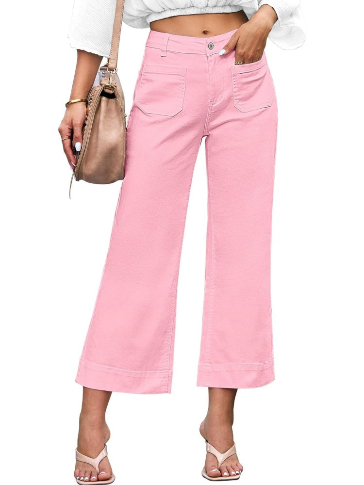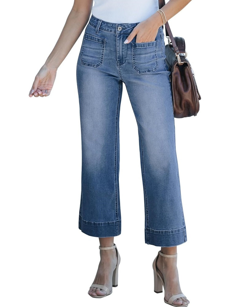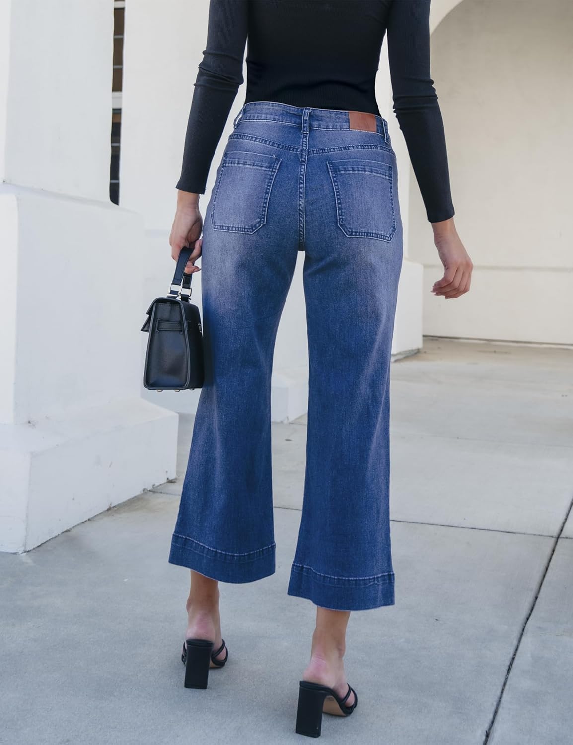 Women's Stretchy Wide Leg Jeans with Patch Pockets