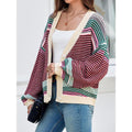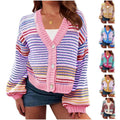 Womens Striped Cardigan Sweaters Color Block Knit Sweater Coat Oversized Cardigan Sweaters For Women