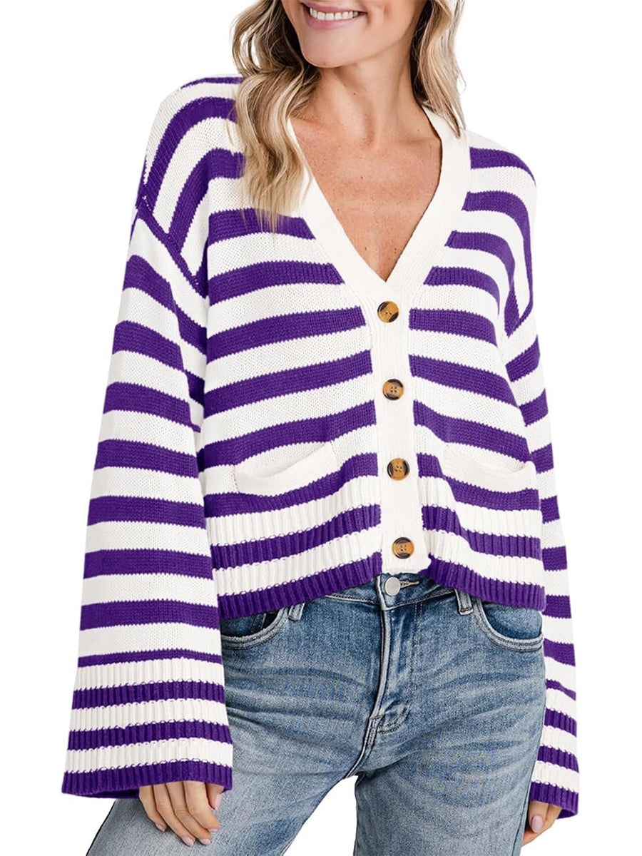 Wrap yourself in this striped cardigan for a cozy feel and classic appeal. Soft, lightweight and comfortable, you will want to live in this thing.The button open front design and ribbed cuff provide comfort and warmth. Whether you're looking for a cozy layer or a stylish addition to your outfit, this oversized cardigan is a perfect choice.