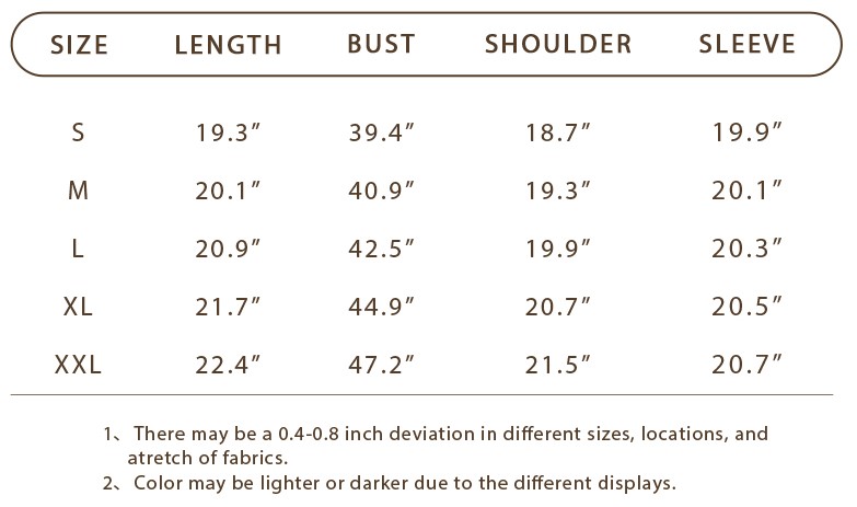 2. Size doesn't fit all, please carefully check size chart and select the size based on your real size
