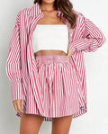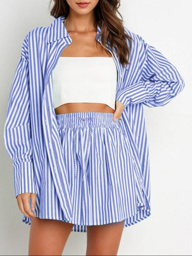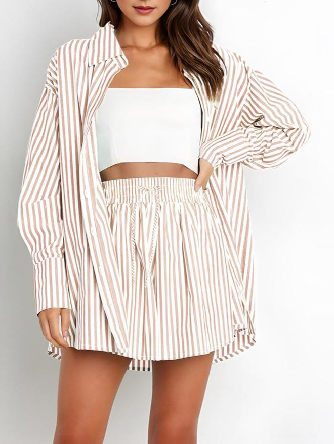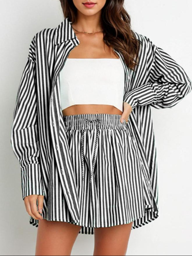 Women's Striped Print Co-ord Two-piece Casual Matching Set