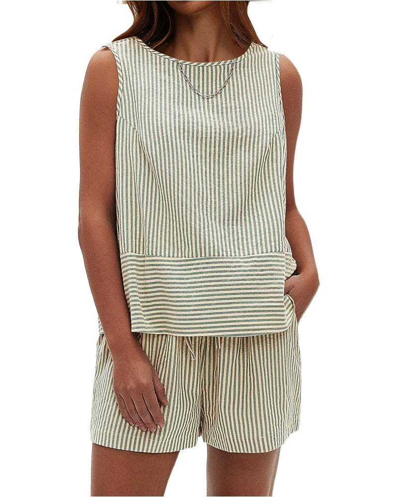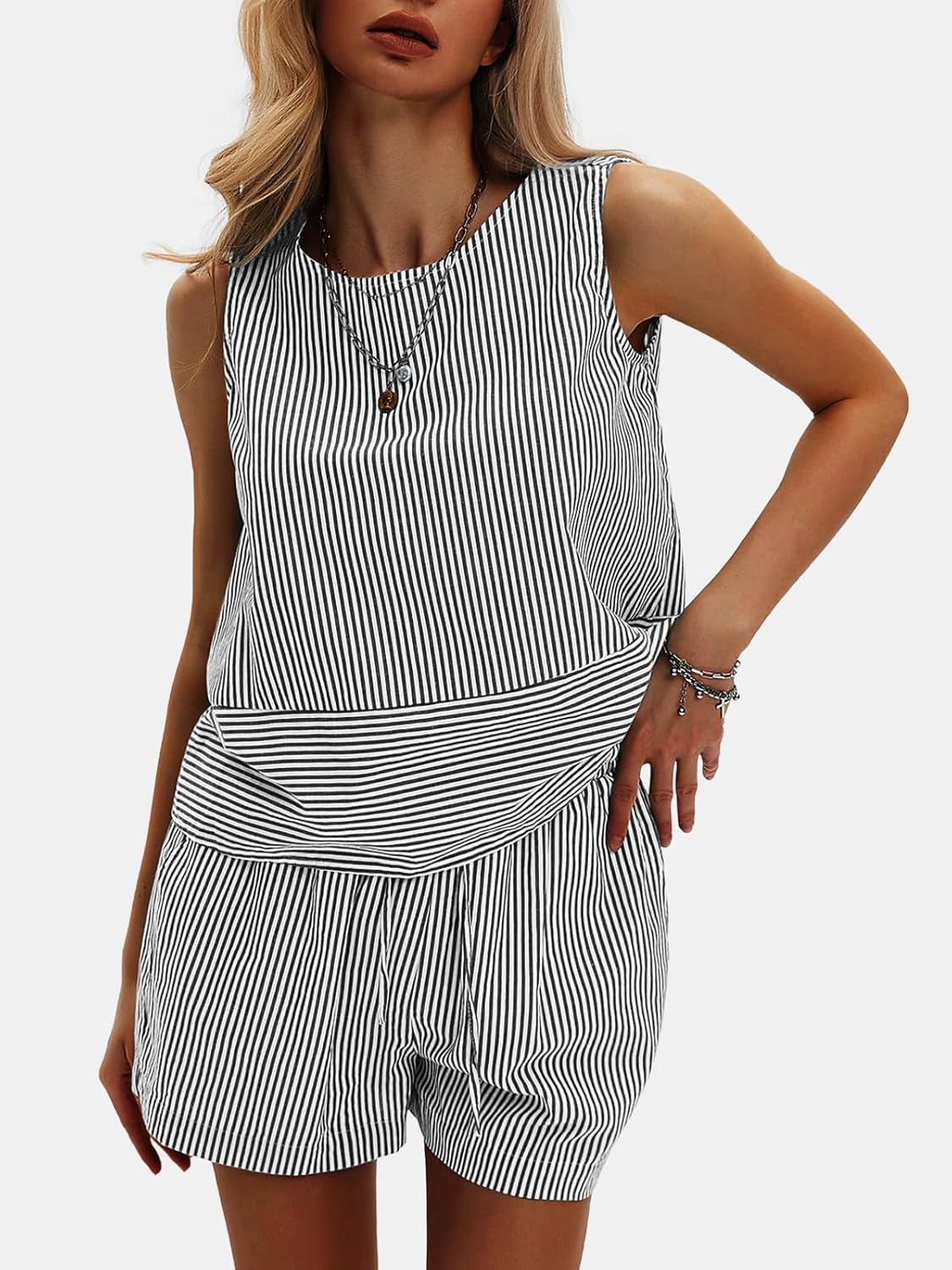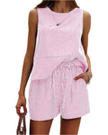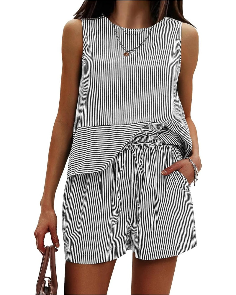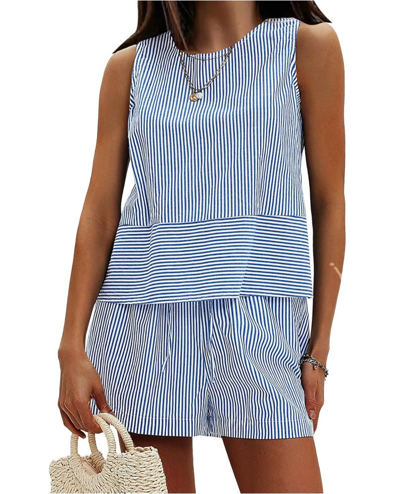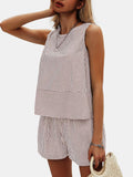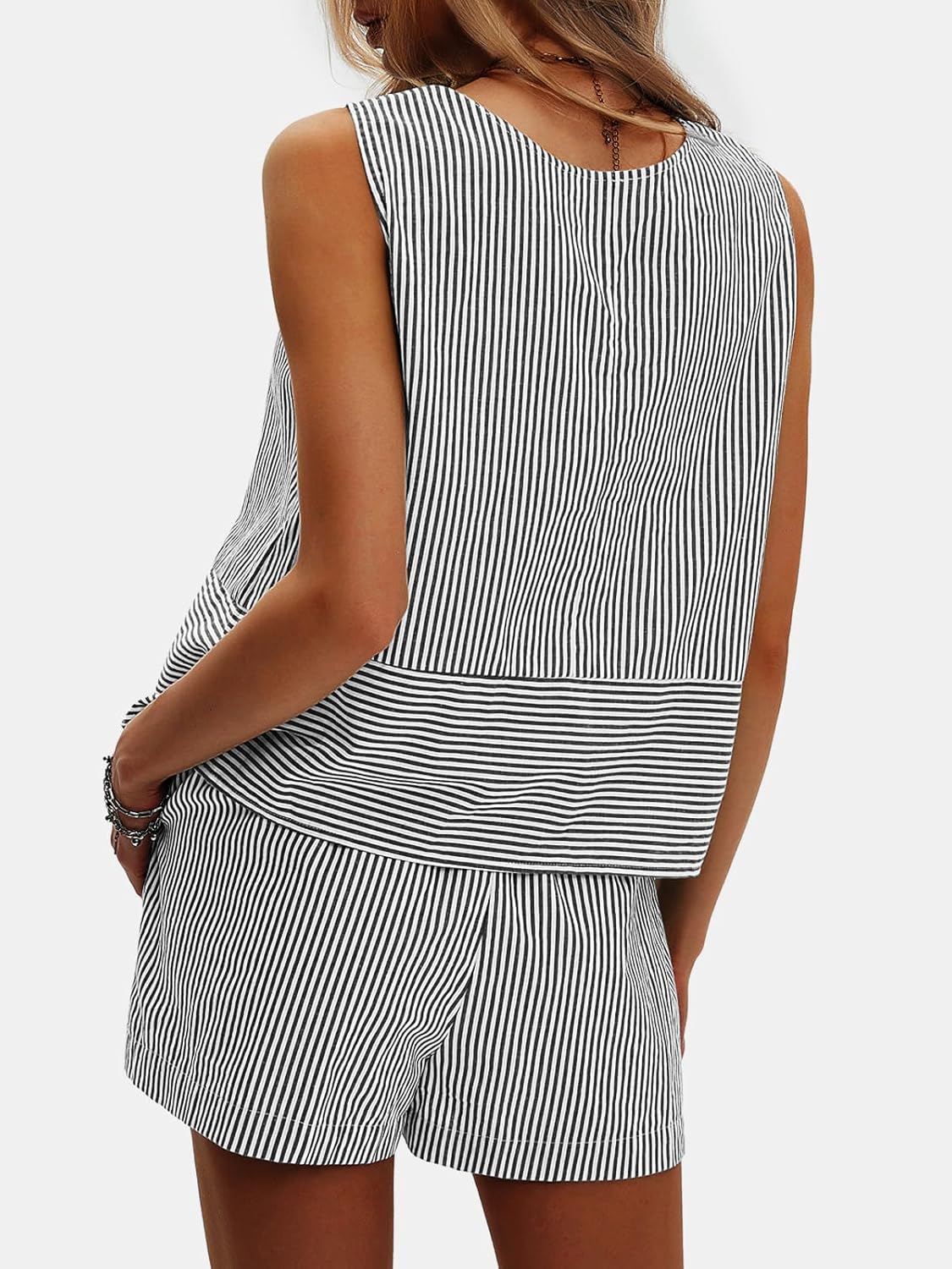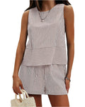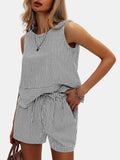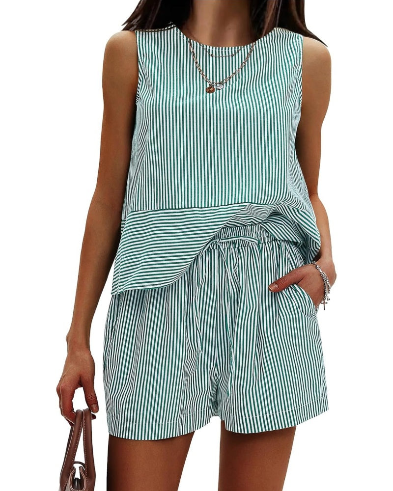 Women's Striped Sleeveless Vest Shorts Two-piece Set
