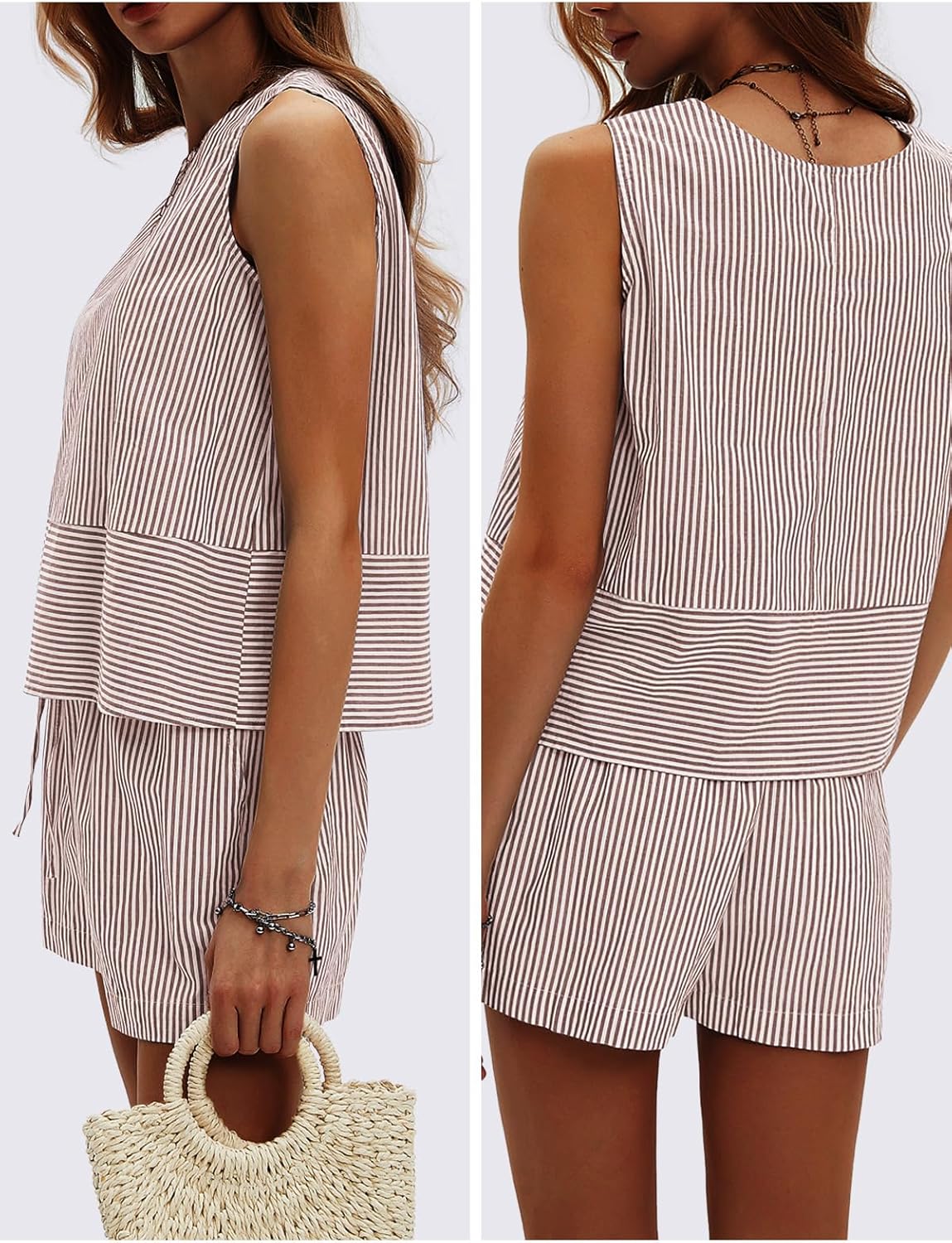 Elevate your summer wardrobe with this Striped Sleeveless Vest Shorts Two-piece Set. Designed for both comfort and style, this coordinated set delivers a chic, modern look perfect for casual outings or relaxed gatherings.