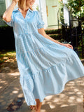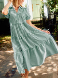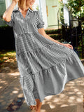 Women's Striped V-Neck Puff Sleeve Dress