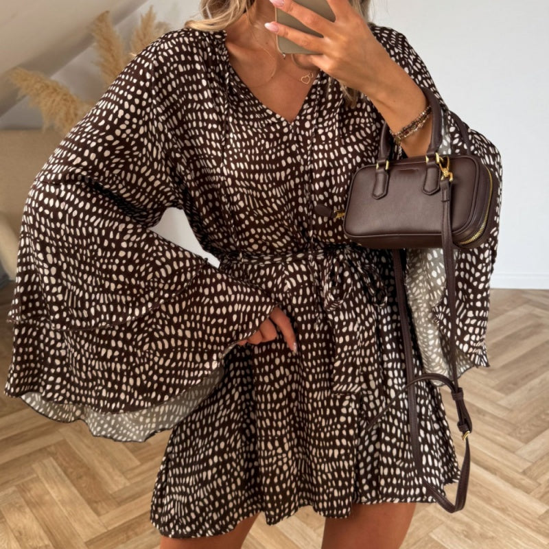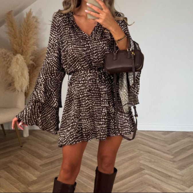 Women's Stylish Print Long Sleeve V-Neck Dress